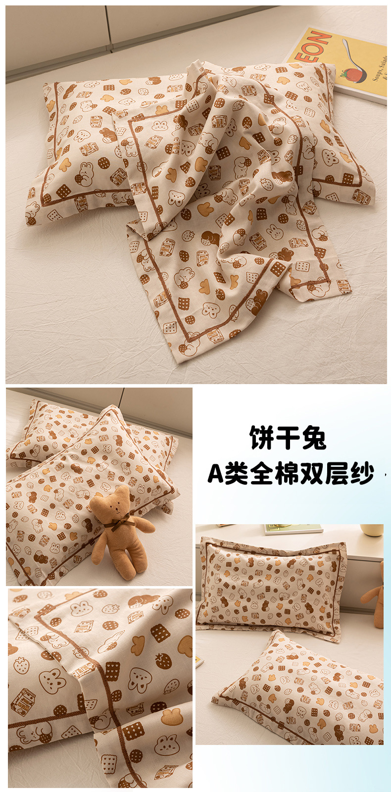 새로운 클래스 A 면화 세척 이중 원사 만화 어린이 면화 베개 커버 봉투 베개 싱글 베개 커버 기숙사 도매