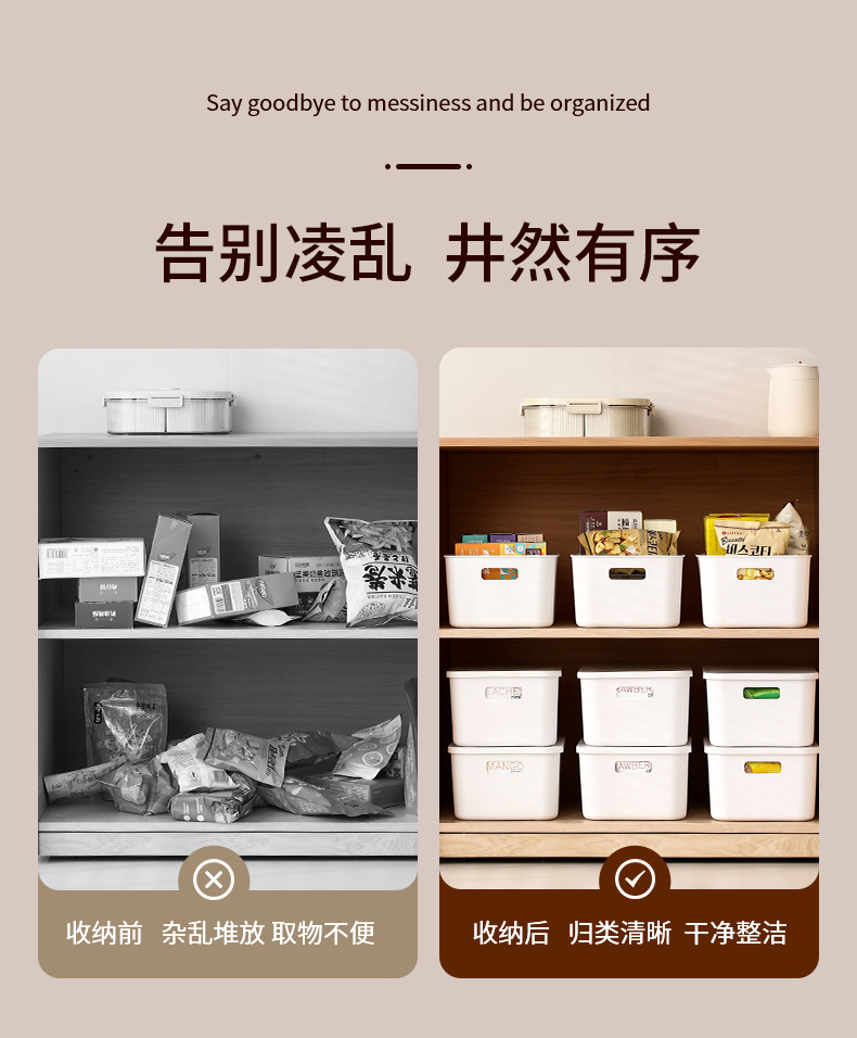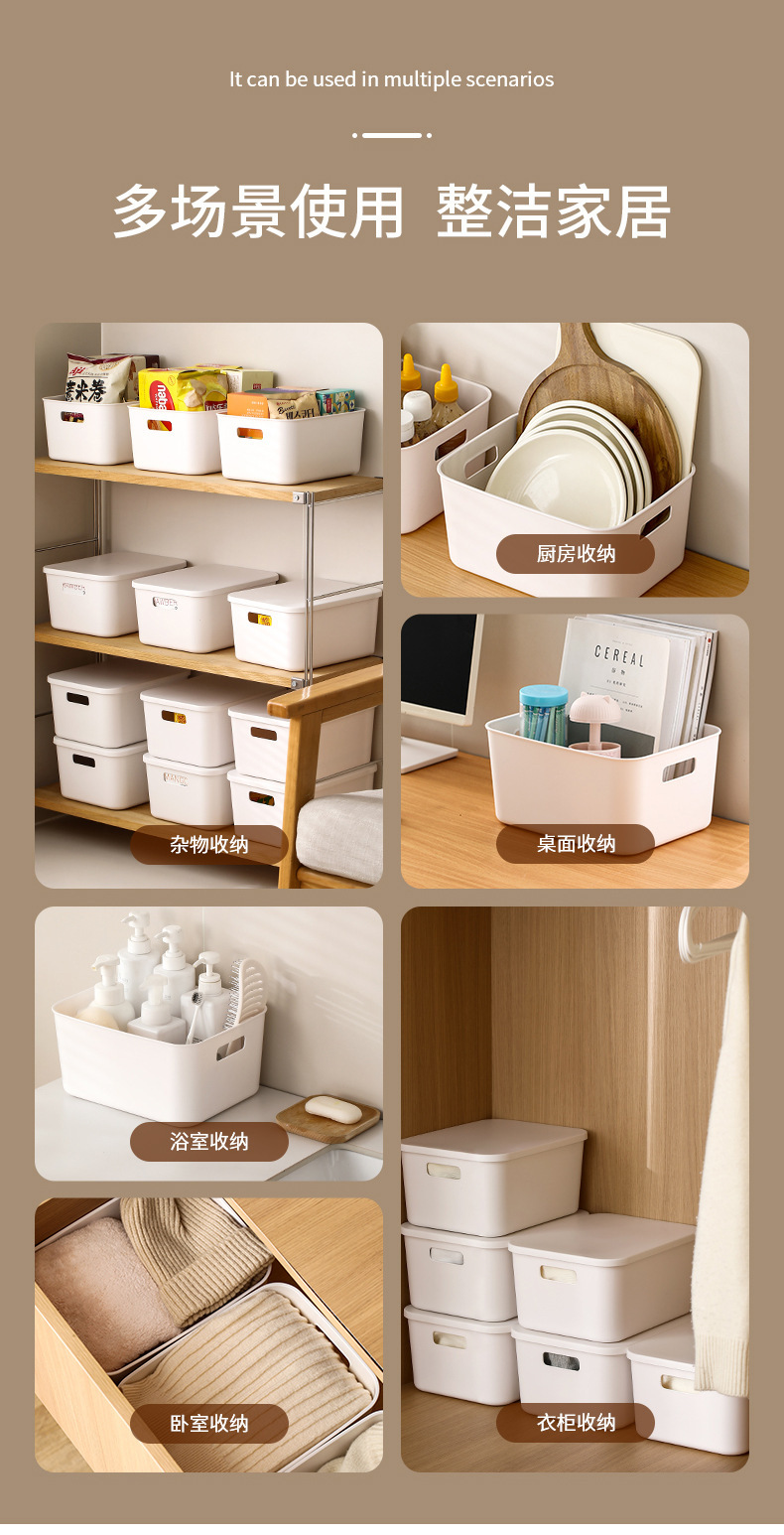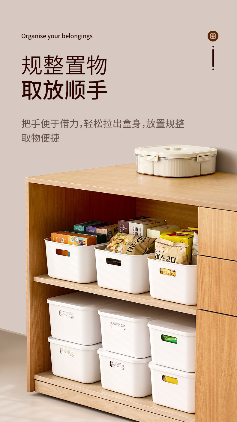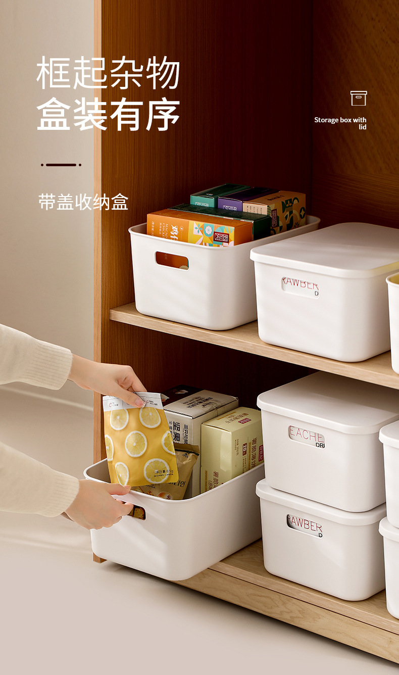 FaSoLa 데스크탑 정리 상자 주방 잡화 스낵 직사각형 보관 상자 뚜껑이 있는 거실 정리 보관 상자