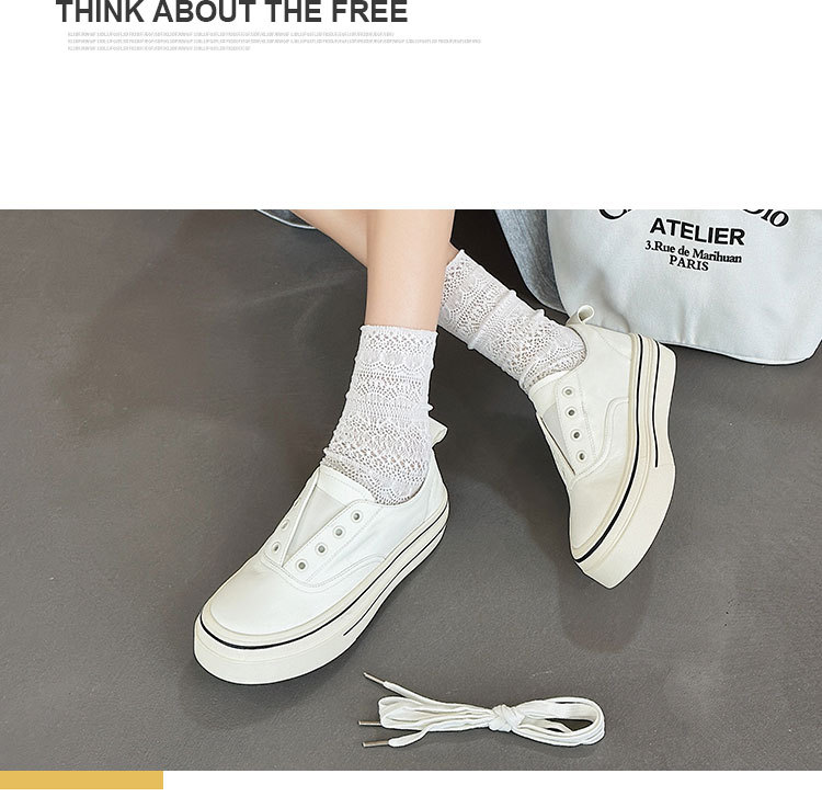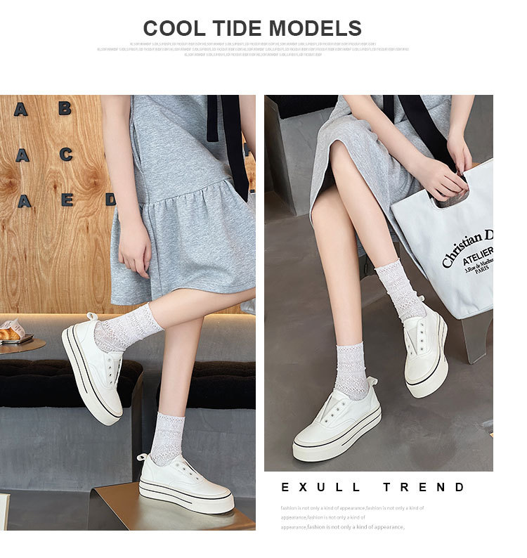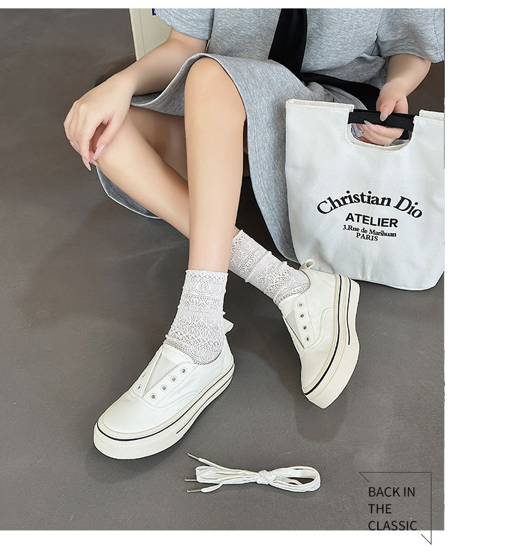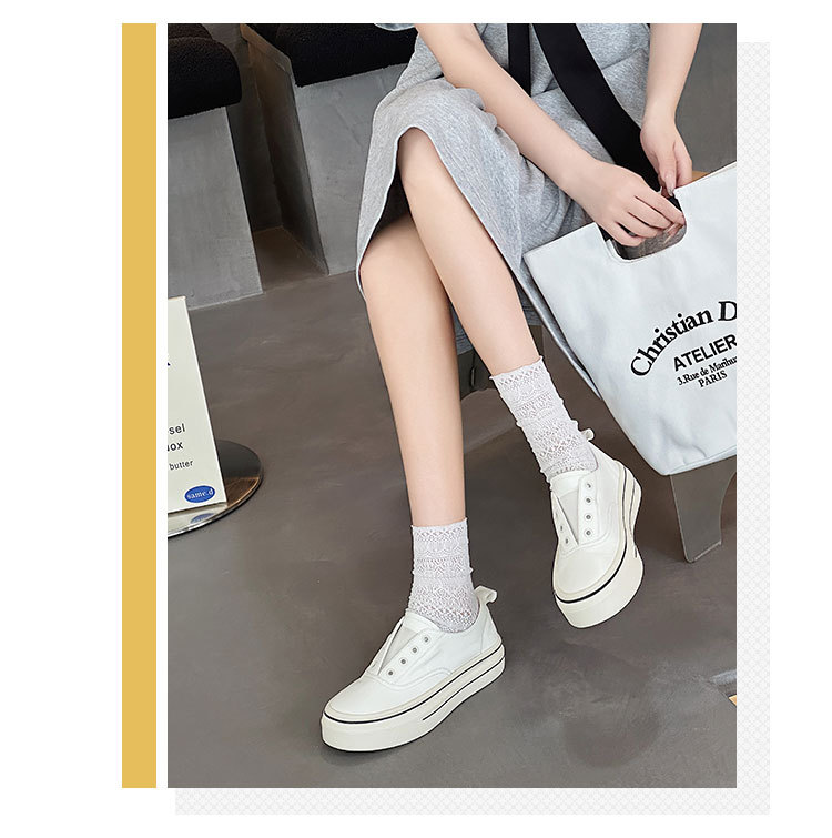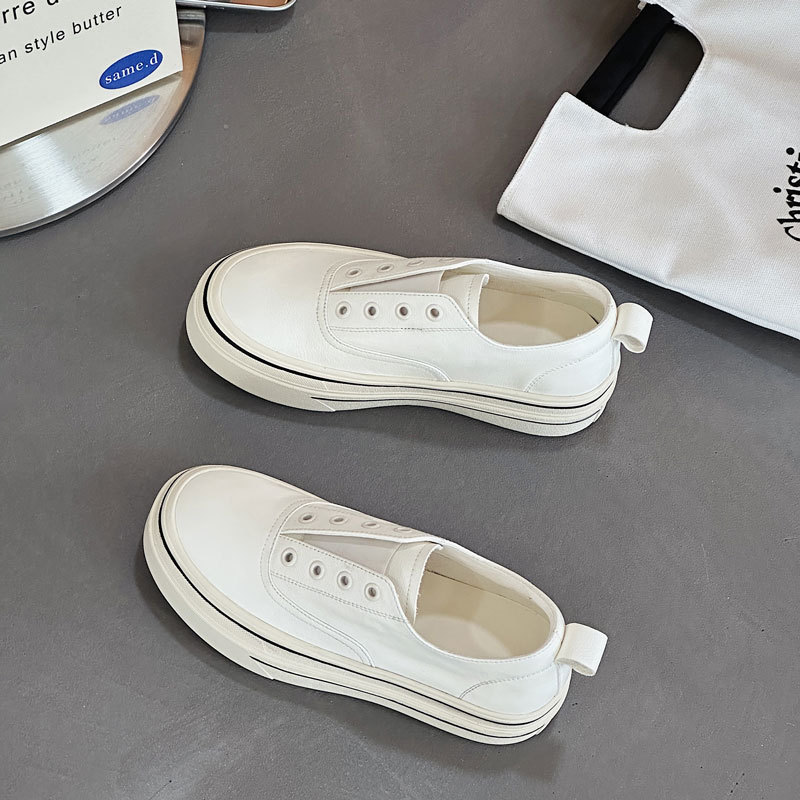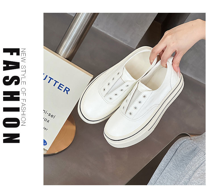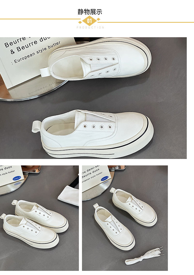 여성을 위한 천연가죽 흰색 신발 2025 봄 여름 새로운 두꺼운 밑창 다용도 슬립온 슬립온 신발로 발을 더 크고 납작한 신발처럼 보이게 해줍니다.스토어 가기