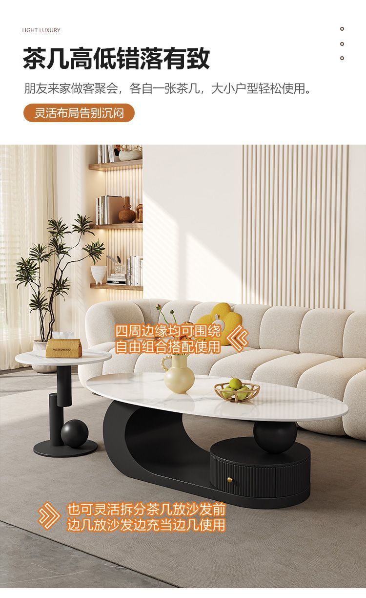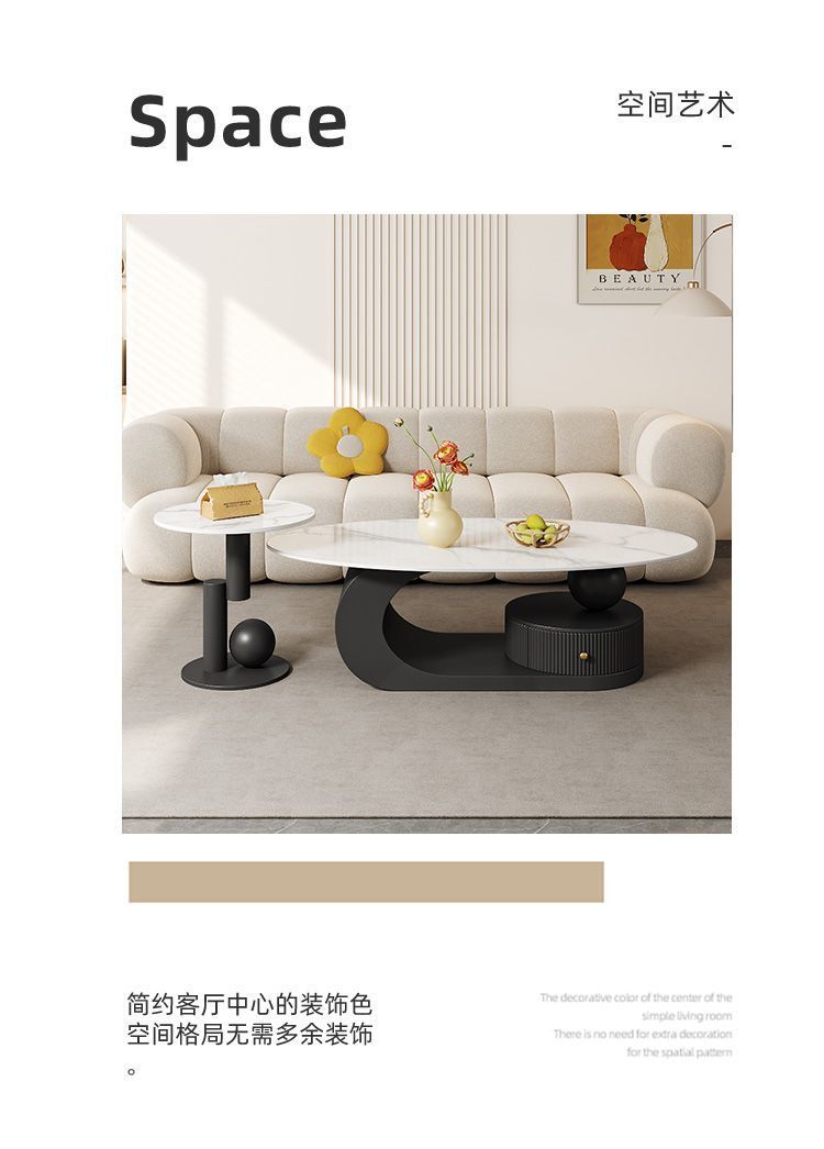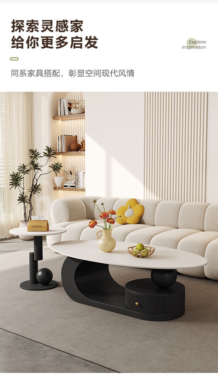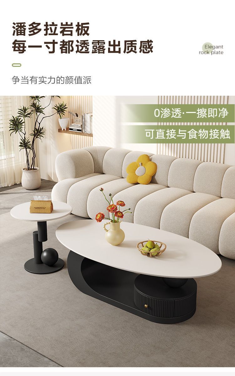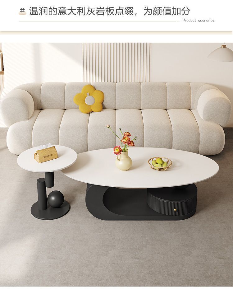Wabi-sabi 스타일 슬레이트 커피 테이블 거실 가정용 작은 타원형 티 테이블 새로운 간단한 현대 티 테이블 조합스토어 가기