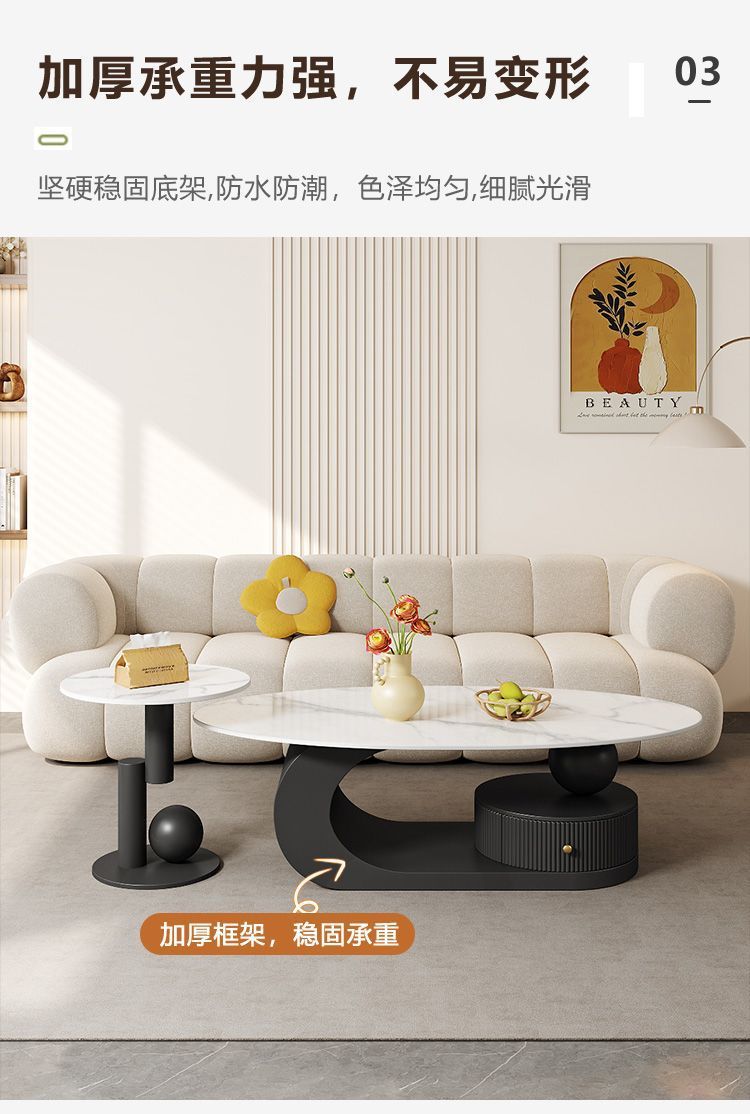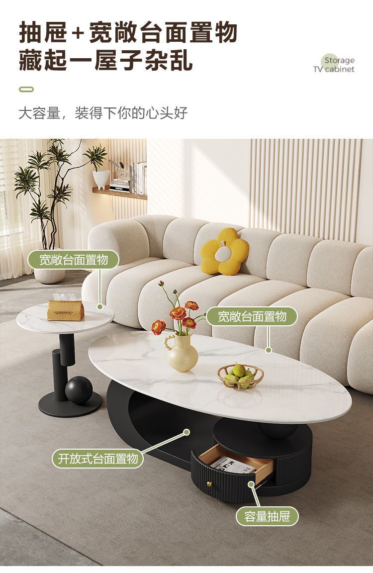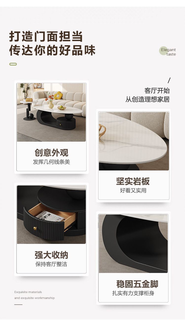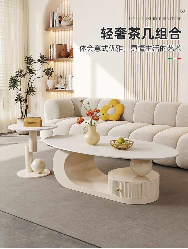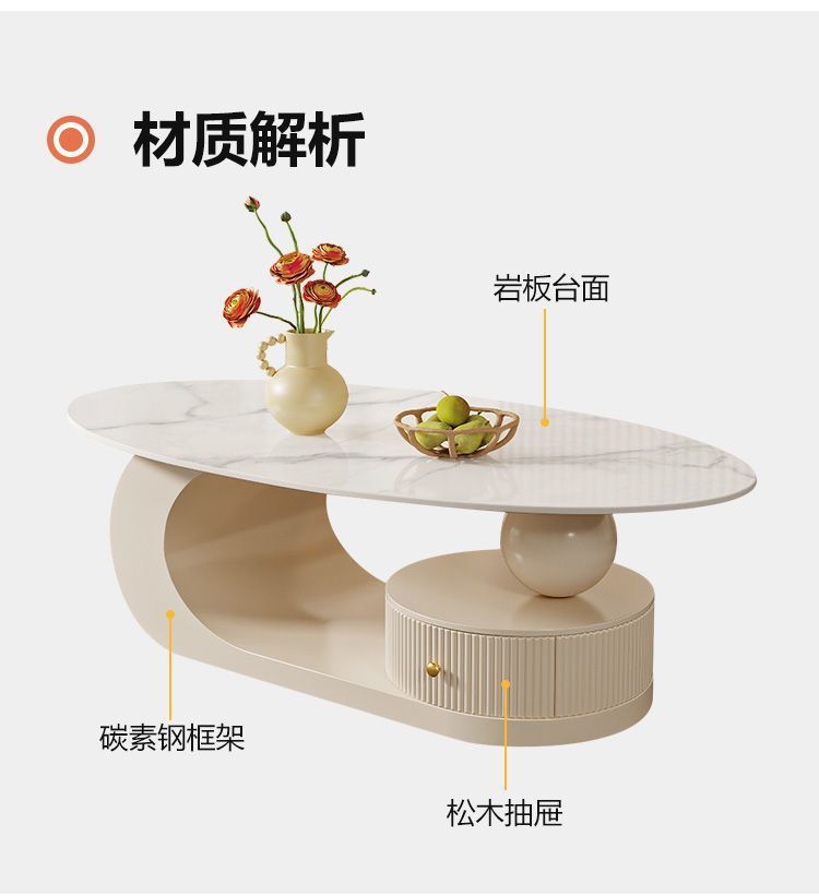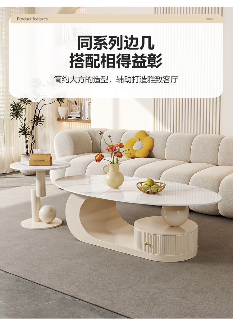 Wabi-sabi 스타일 슬레이트 커피 테이블 거실 가정용 작은 타원형 티 테이블 새로운 간단한 현대 티 테이블 조합스토어 가기