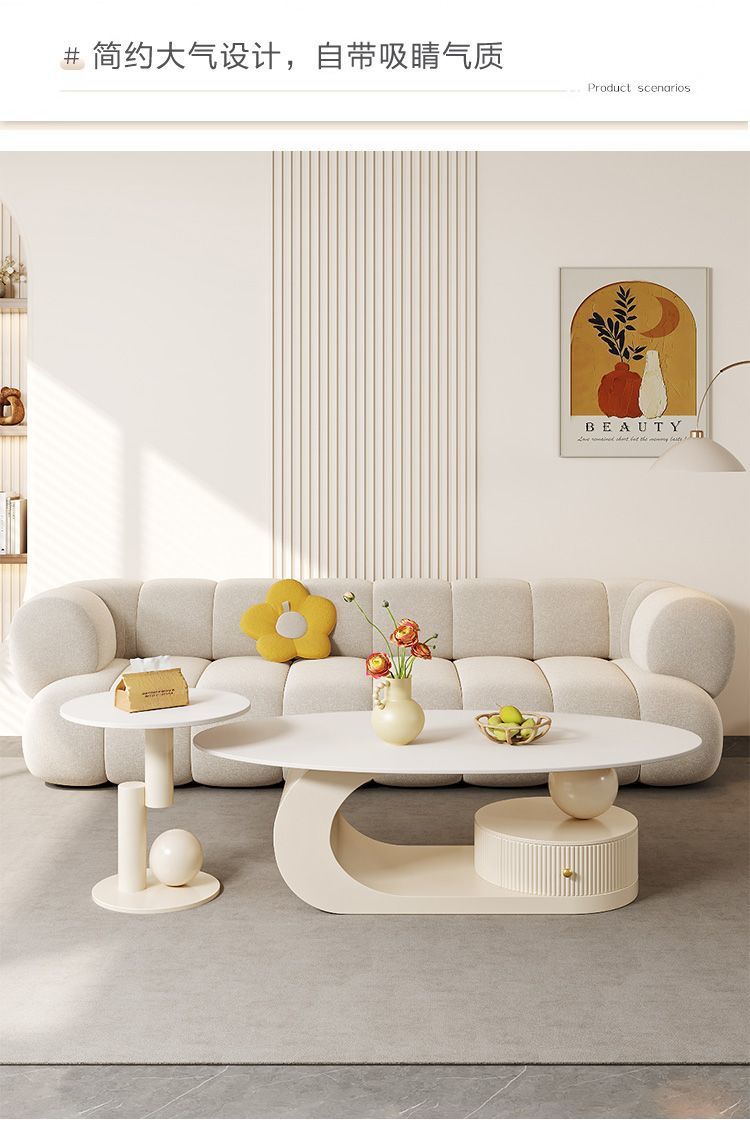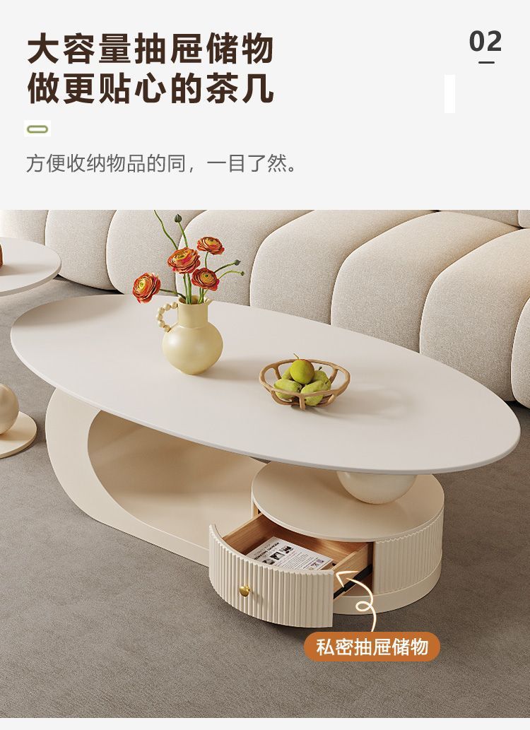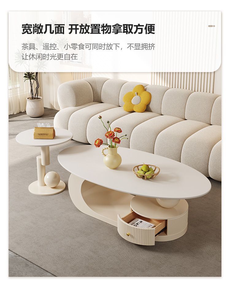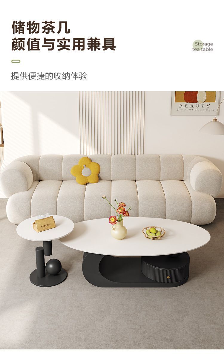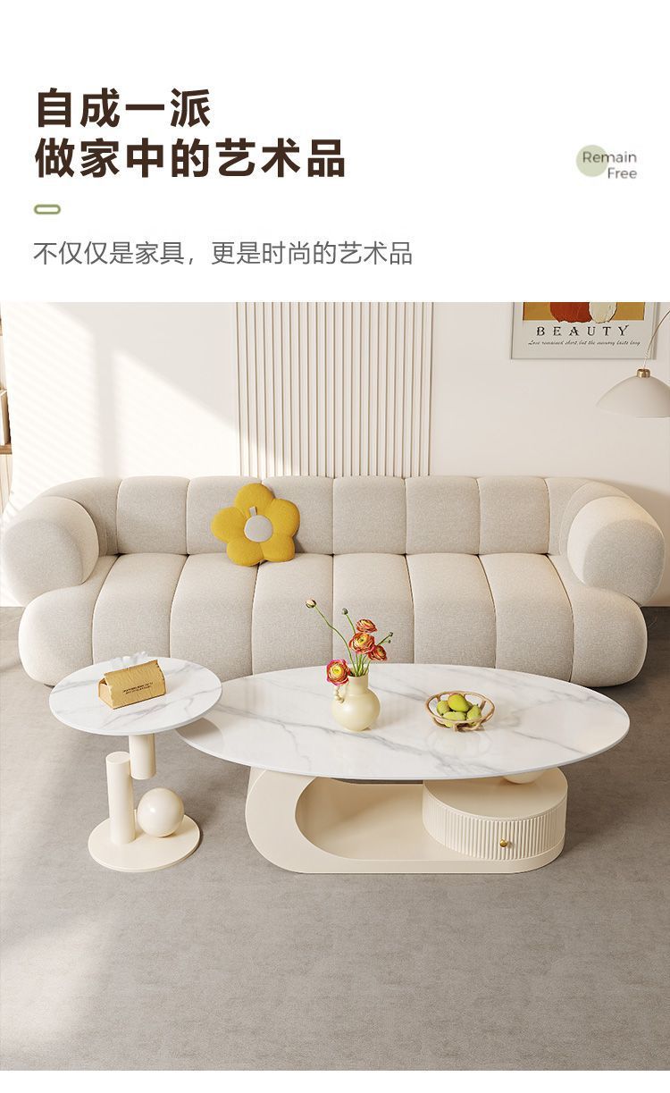 Wabi-sabi 스타일 슬레이트 커피 테이블 거실 가정용 작은 타원형 티 테이블 새로운 간단한 현대 티 테이블 조합스토어 가기