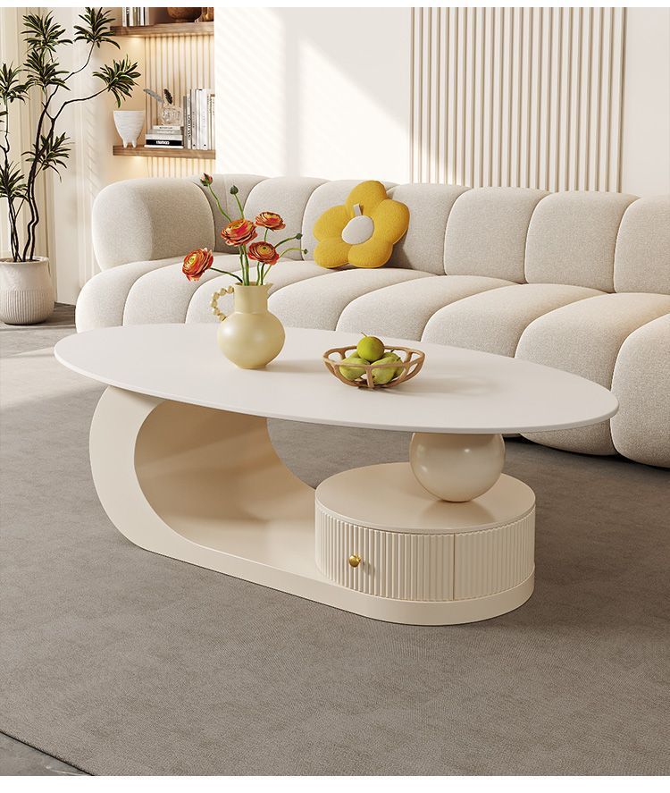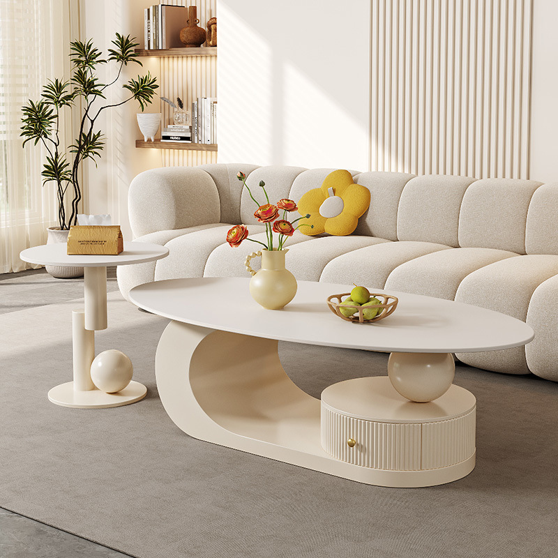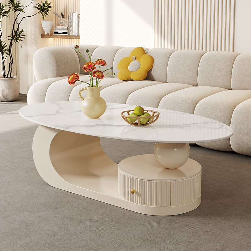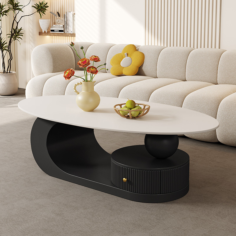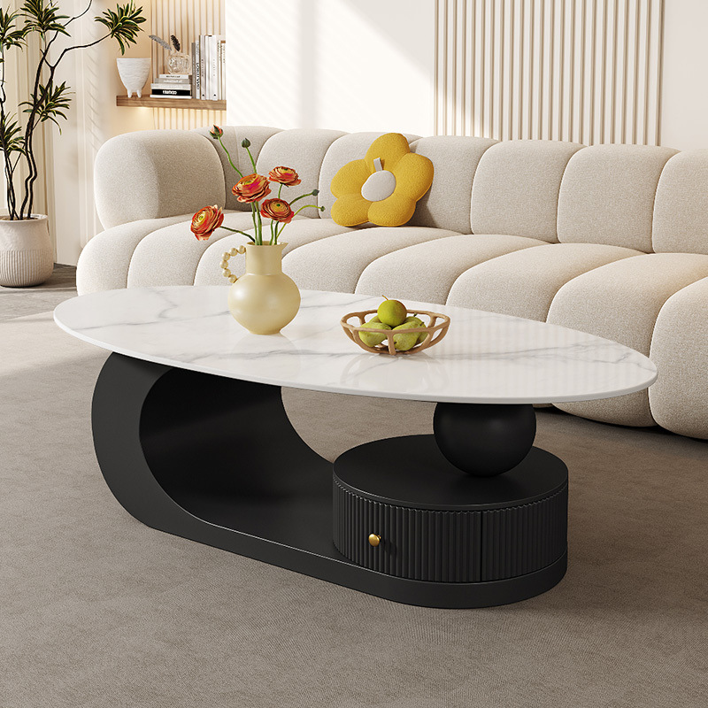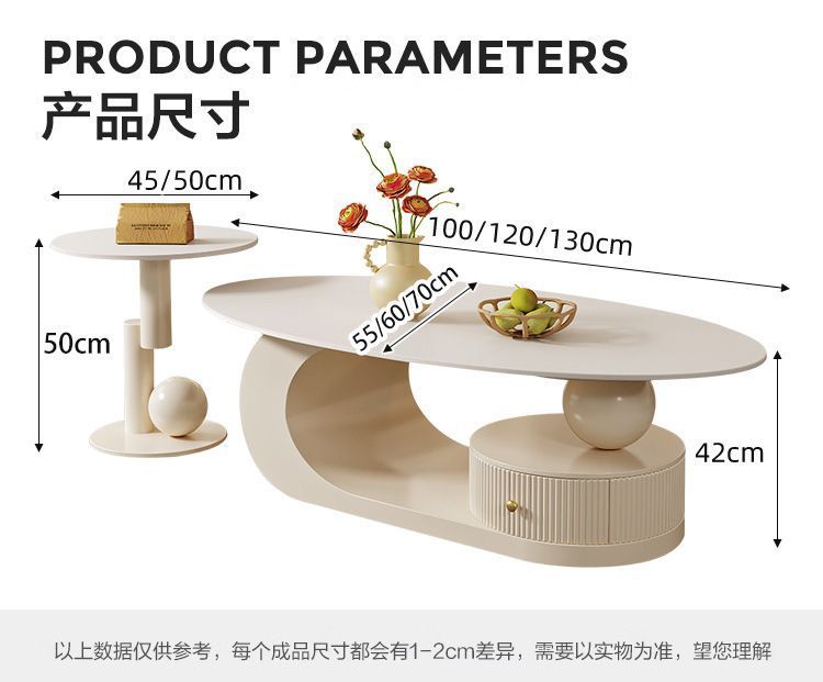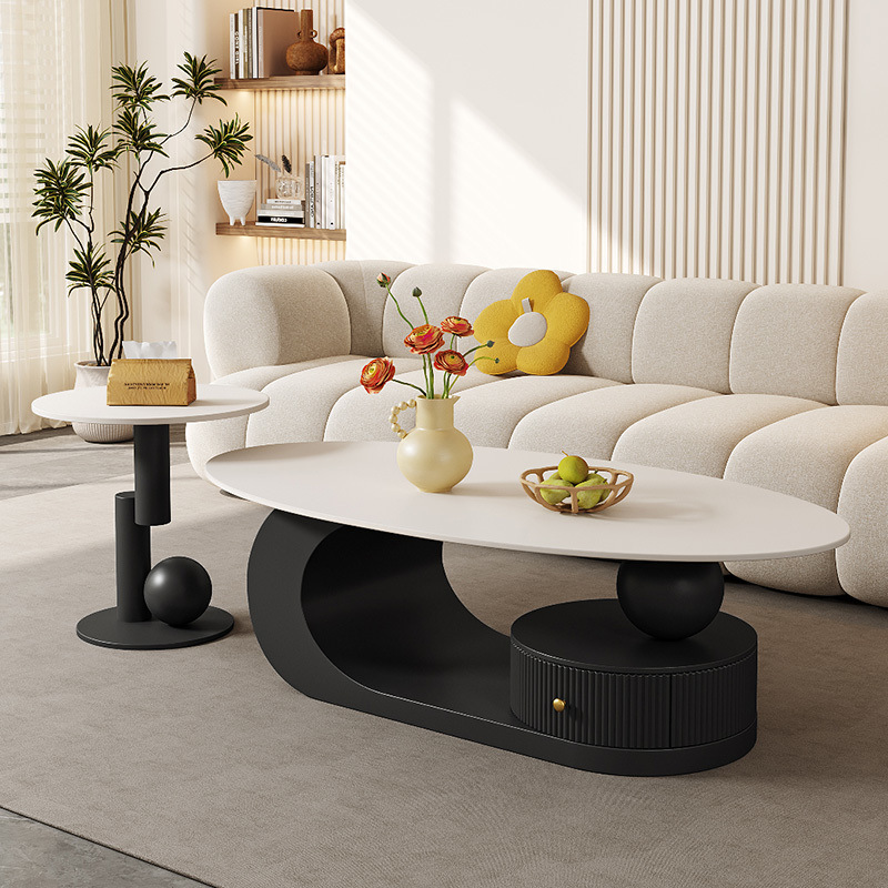 Wabi-sabi 스타일 슬레이트 커피 테이블 거실 가정용 작은 타원형 티 테이블 새로운 간단한 현대 티 테이블 조합