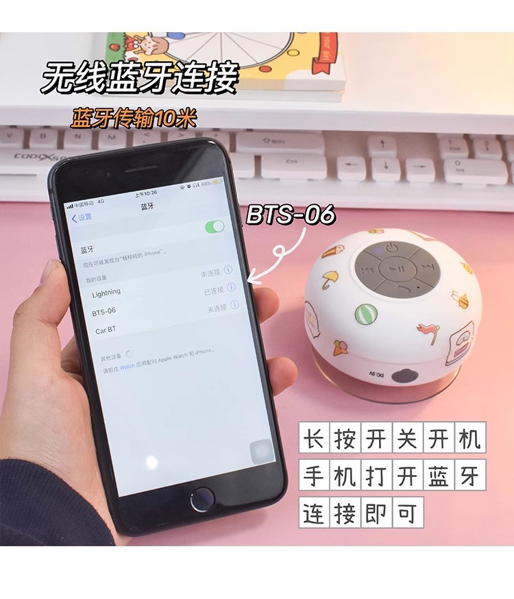 욕실 방수 블루투스 스피커 주방 대형 흡입 컵 미니 무선 휴대용 소형 스피커 야외 bts-06스토어 가기