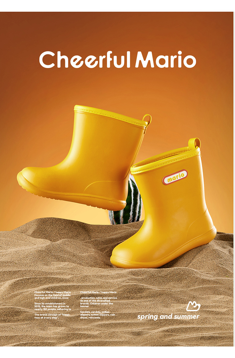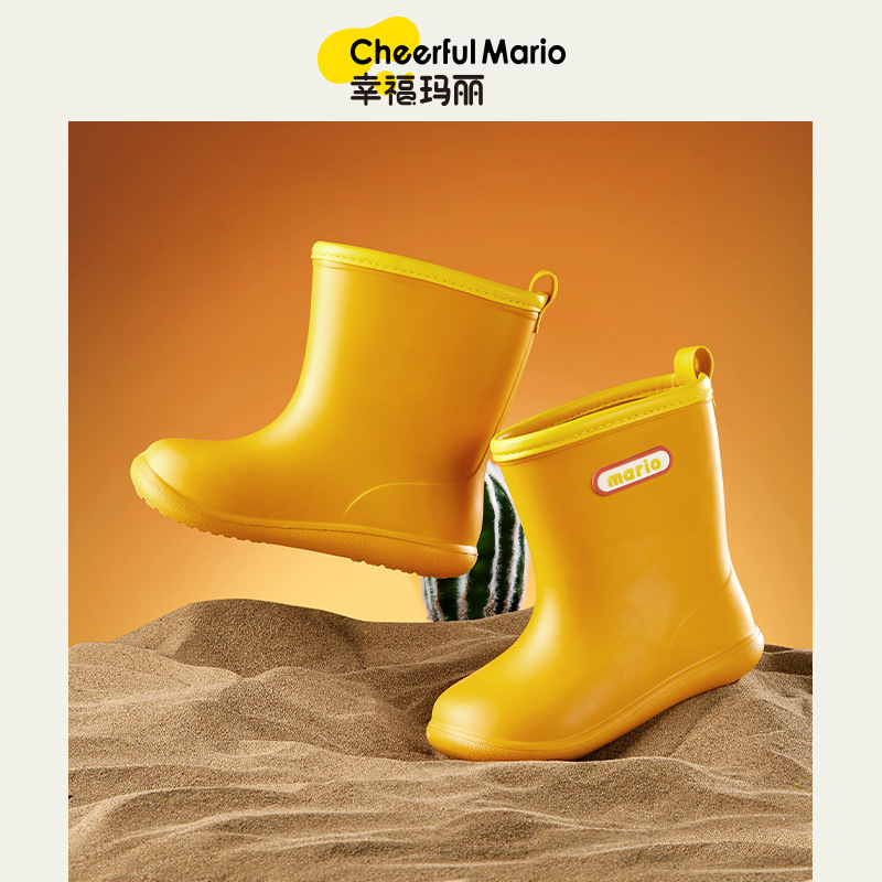 해피 메리 어린이 비 부츠 소년 장화 경량 미끄럼 방지 유치원 아기 소녀 물 신발 어린이 방수 고무 신발