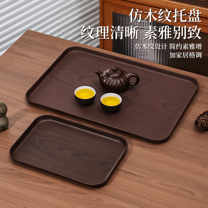 모조 우드 그레인 직사각형 트레이 상업용 디저트 디너 플레이트 컵 저장 플레이트 플라스틱 컬러 값 차 세트 차 세트