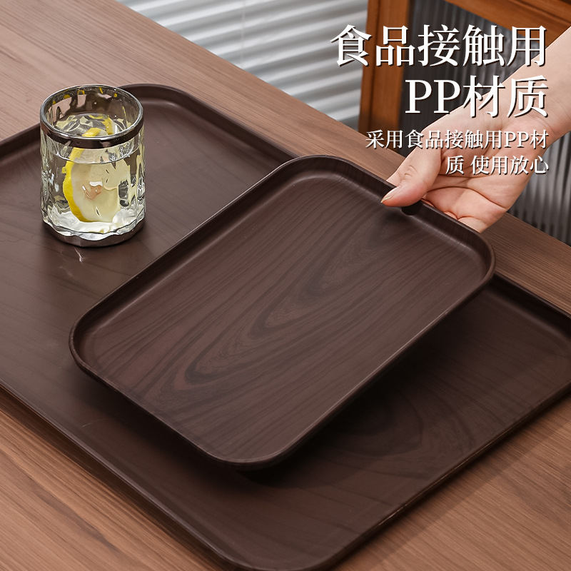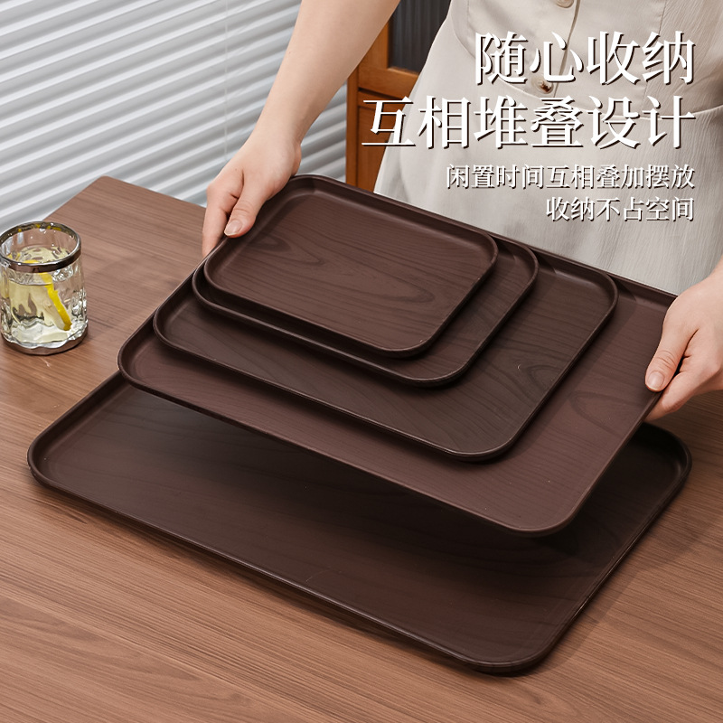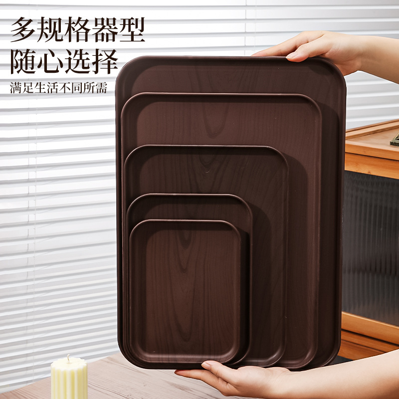 모조 우드 그레인 직사각형 트레이 상업용 디저트 디너 플레이트 컵 저장 플레이트 플라스틱 컬러 값 차 세트 차 세트스토어 가기