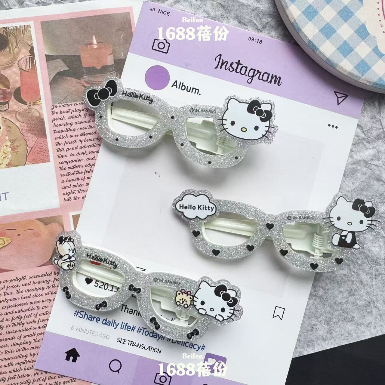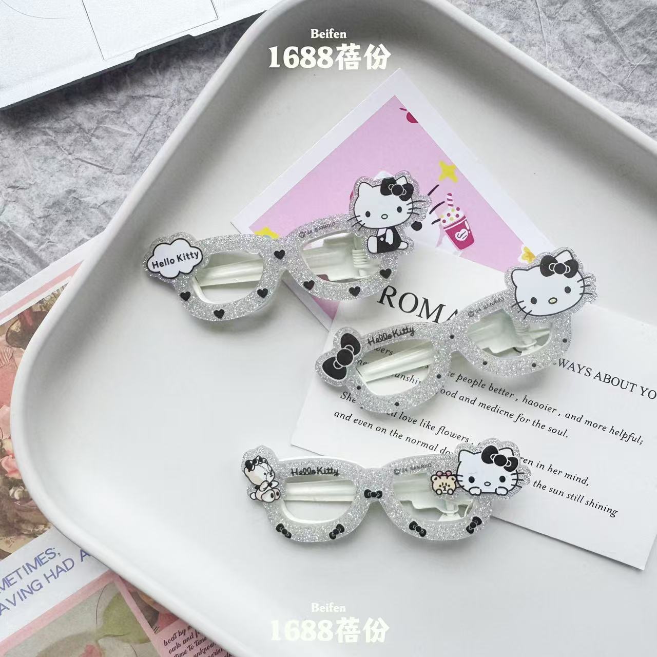 산푸 실버 블랙 KT 고양이 안경 헤어핀 인 올매치 소녀의 하트 덕빌 클립 패션 만화 뱅 클립 클립 헤어 액세서리스토어 가기