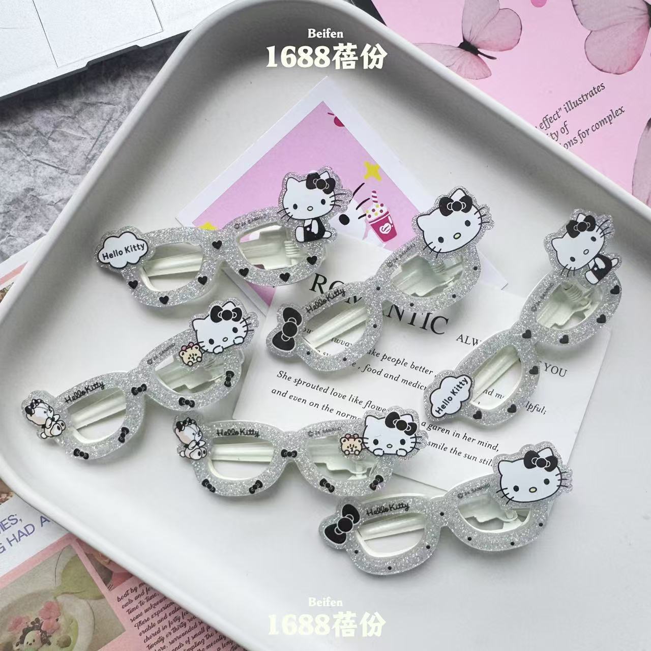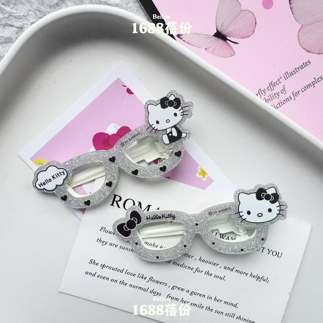 산푸 실버 블랙 KT 고양이 안경 헤어핀 인 올매치 소녀의 하트 덕빌 클립 패션 만화 뱅 클립 클립 헤어 액세서리