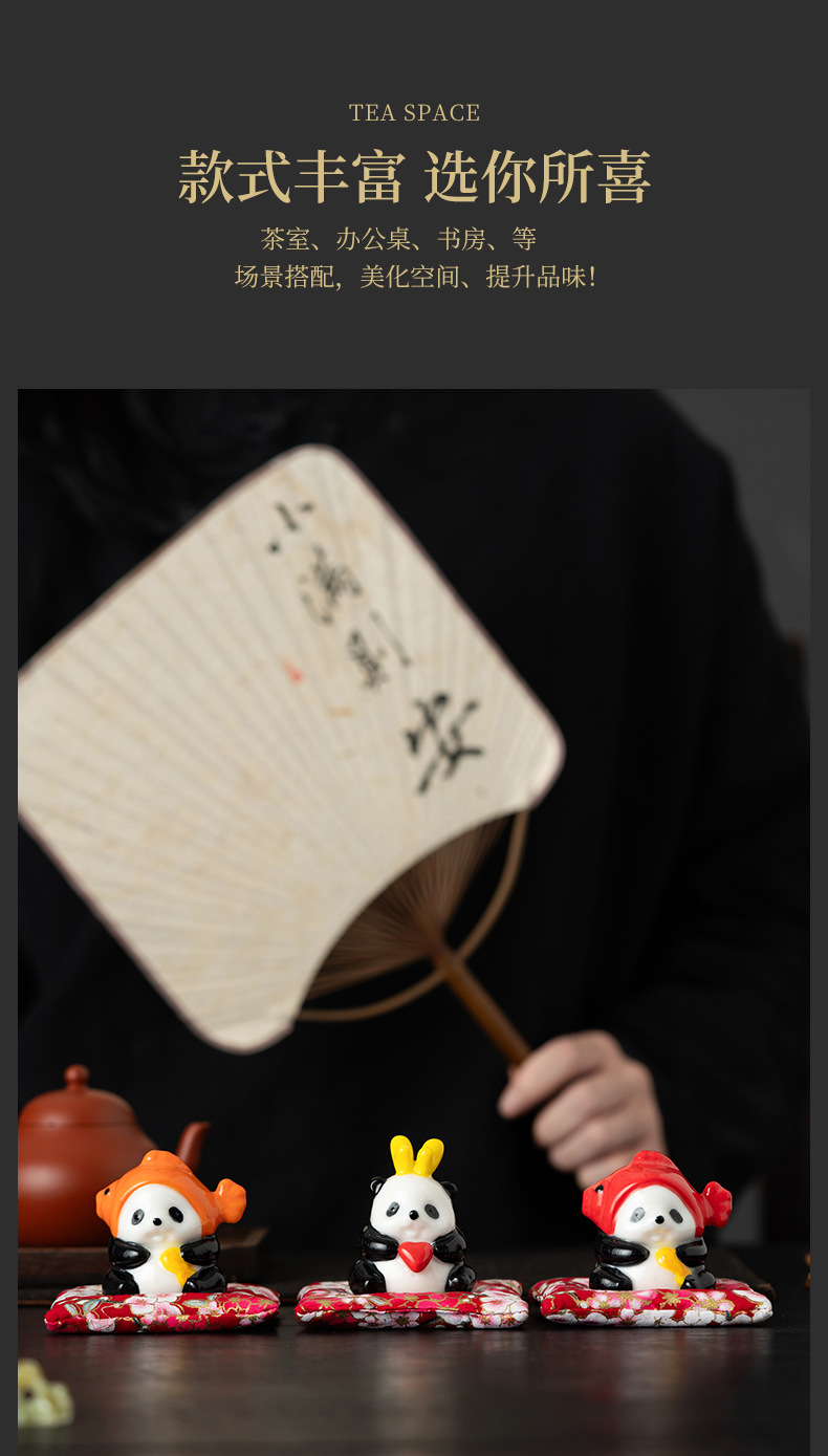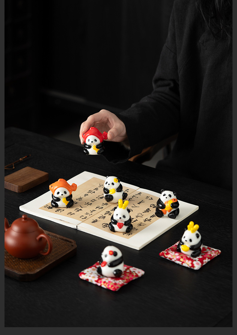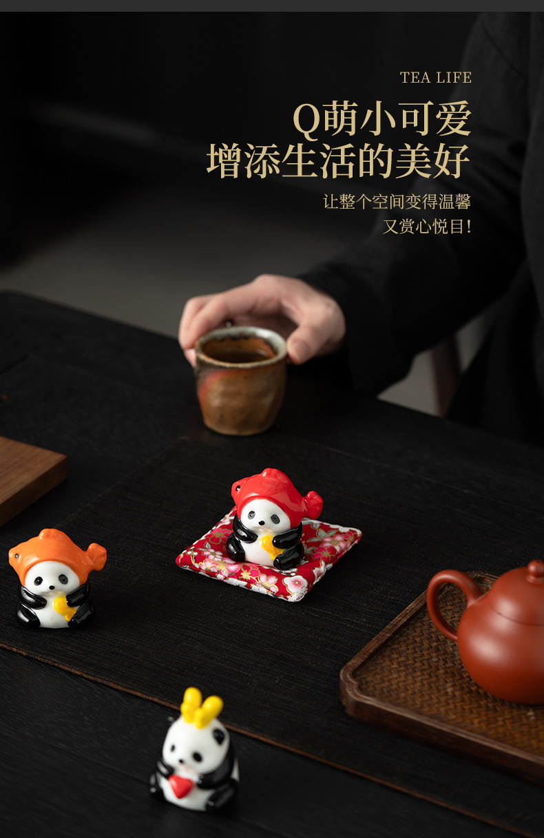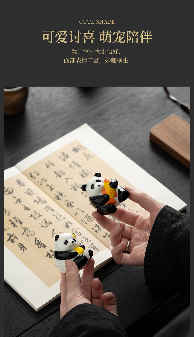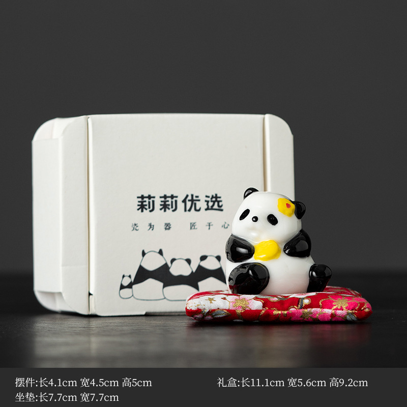 팬더 화이트 도자기 차 애완 동물 데스크탑 장식품 귀여운 워크 스테이션 좋은 생일 선물 장식품 데스크탑 기분 안정성 아티팩트