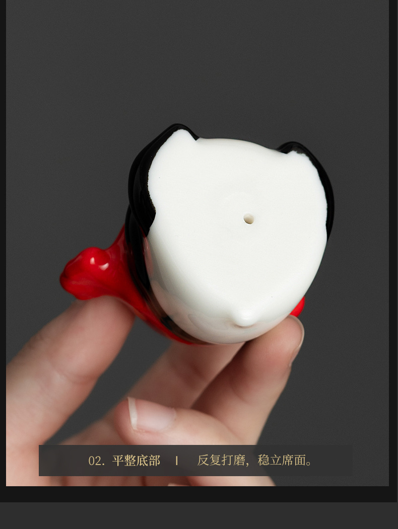 • 작은 붉은 꽃이 있는 팬더 백자 장식품