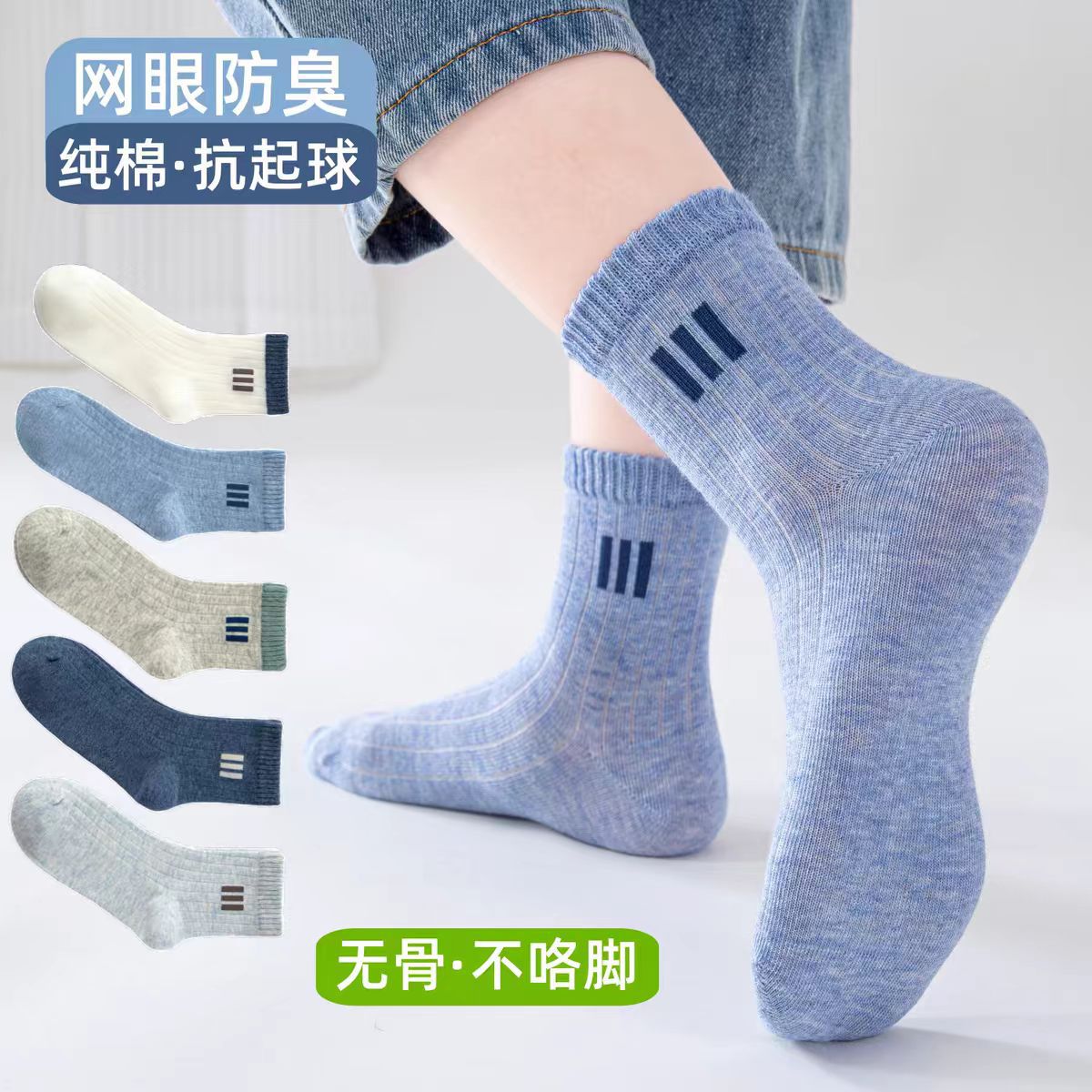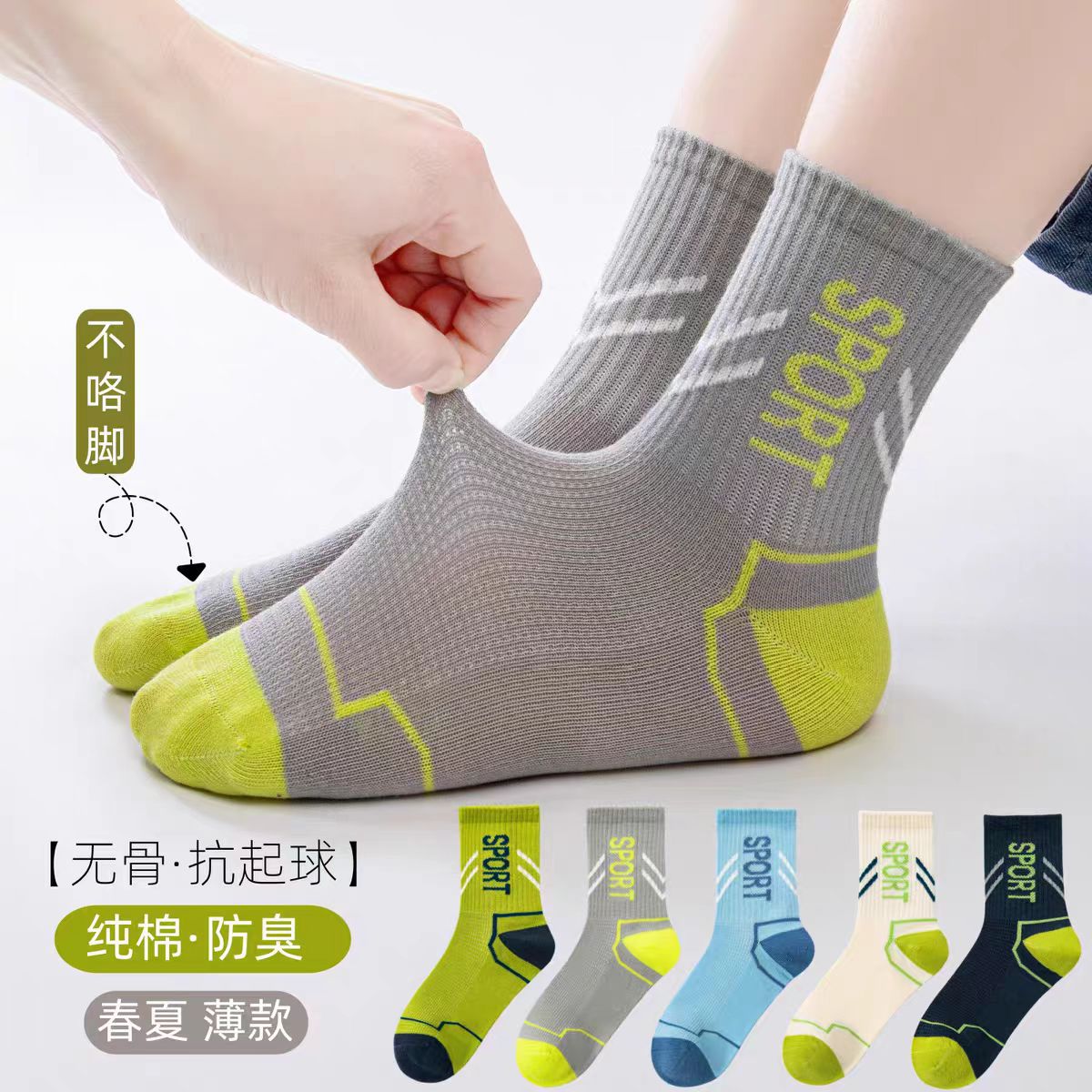 소년 양말 봄과 여름 얇은 10 대 중 큰 어린이 학생 뼈없는 냄새 탈취제 스포츠 양말 봄과 가을 어린이 양말