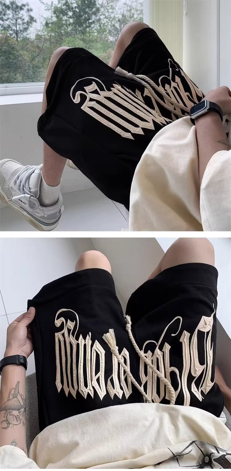 남성용 여름 신작 아메리칸 하이 스트리트 패션 브랜드 멋진 복고풍 스트레이트 5부 중간 바지 캐주얼 루즈 비치 바지스토어 가기