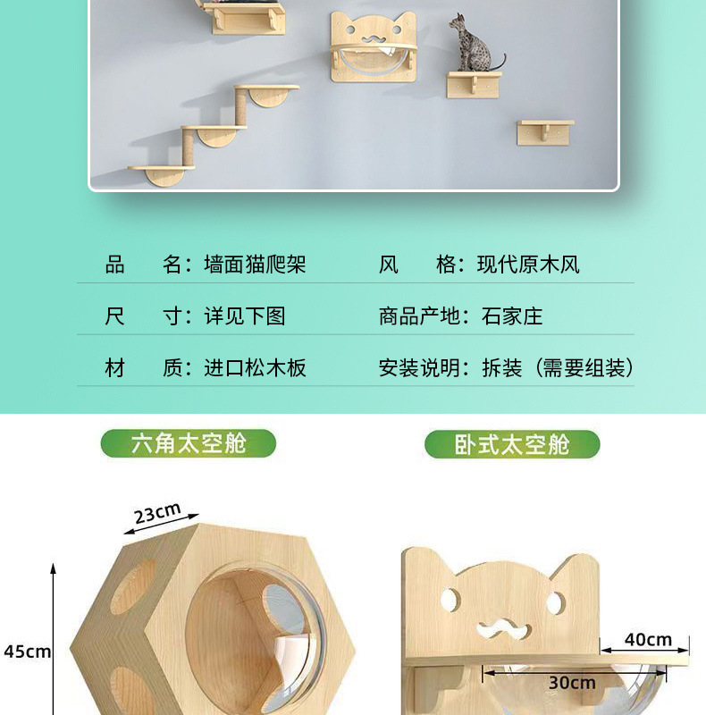 고양이 등반 랙 벽걸이 소형 아파트 통합 솔리드 우드 고양이의 둥지 고양이 점퍼 컬럼 벽걸이 육각형 우주 캡슐스토어 가기