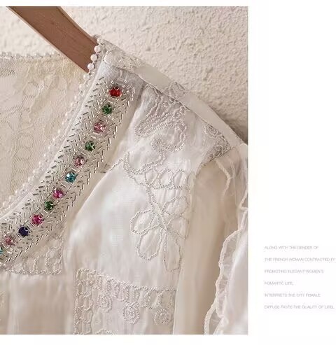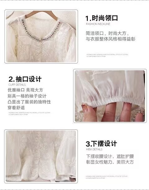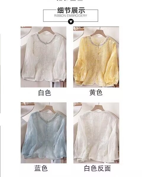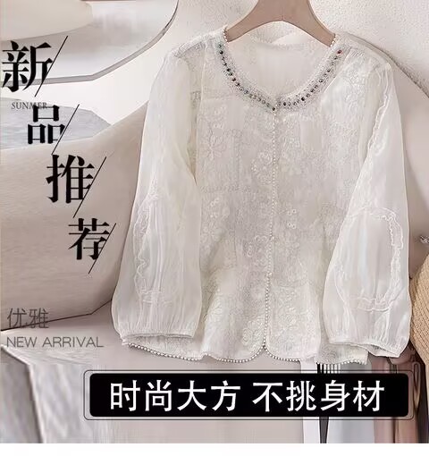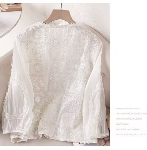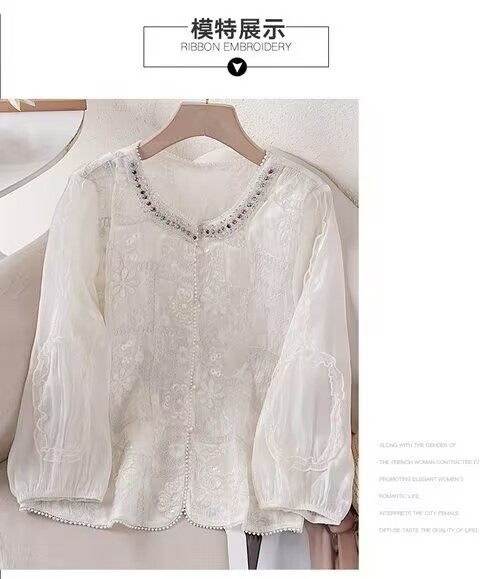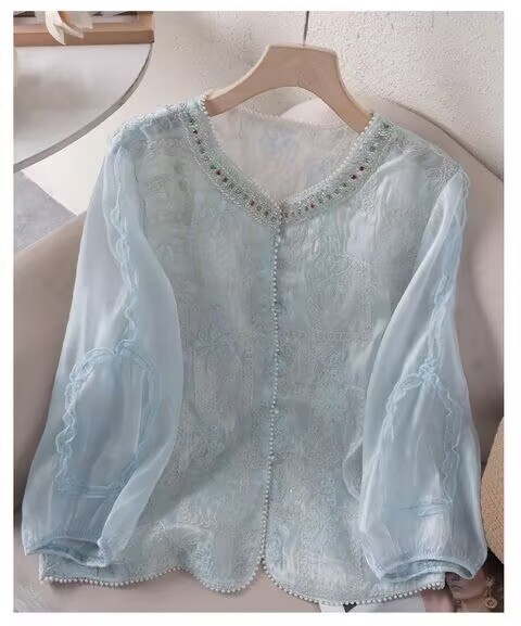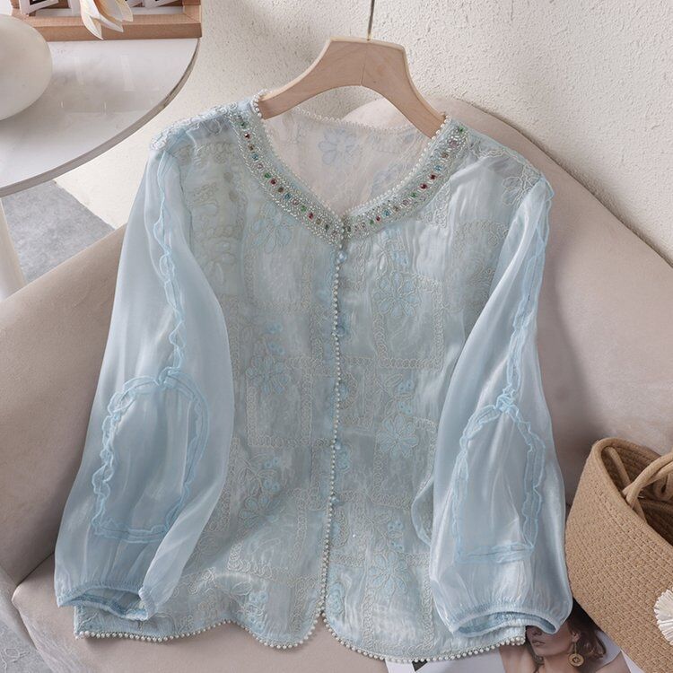 무거운 자수 선스크린 셔츠 여성의 2025 여름 새로운 패션 서양 스타일 슈퍼 잘 생긴 경량 작은 셔츠 우아한 탑스토어 가기