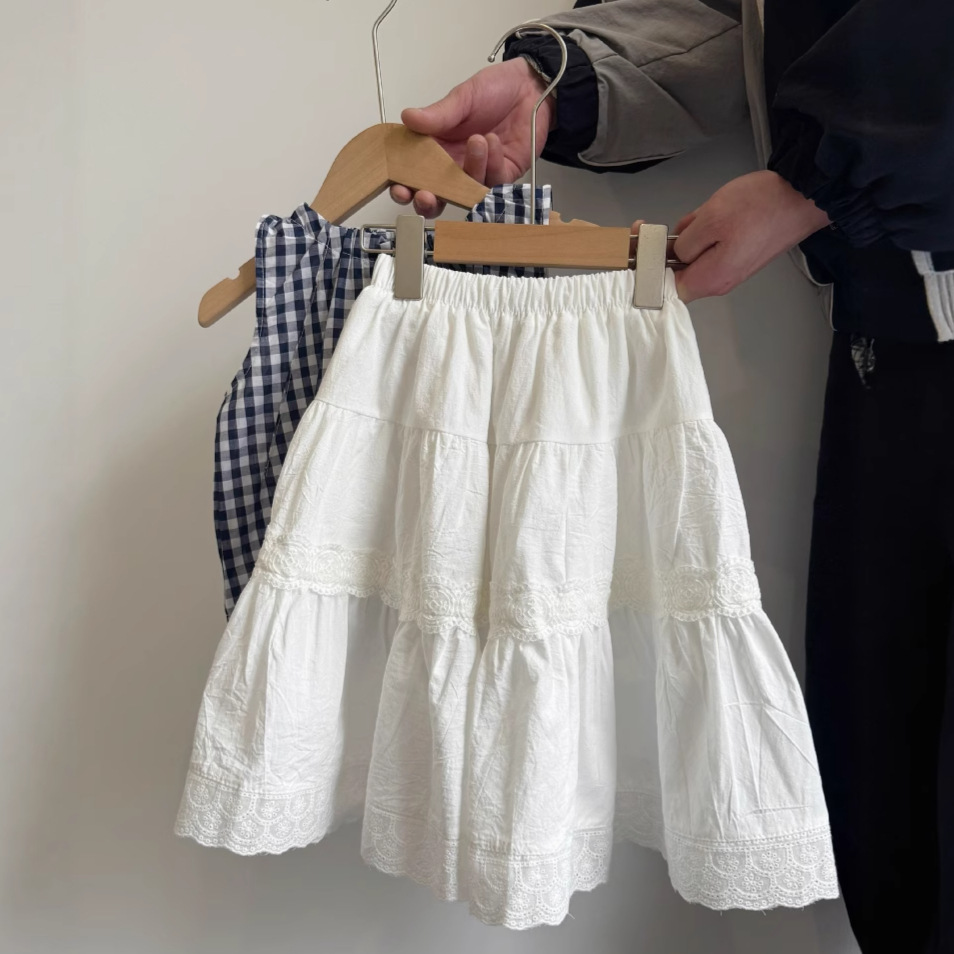 중 · 대형 어린이를위한 2025 년 여름 새 여아 화이트 스커트 레이스