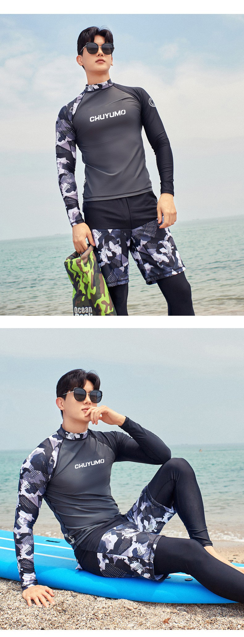 • MD5K07 수영 트렁크 위장 프린트 미드 팬츠