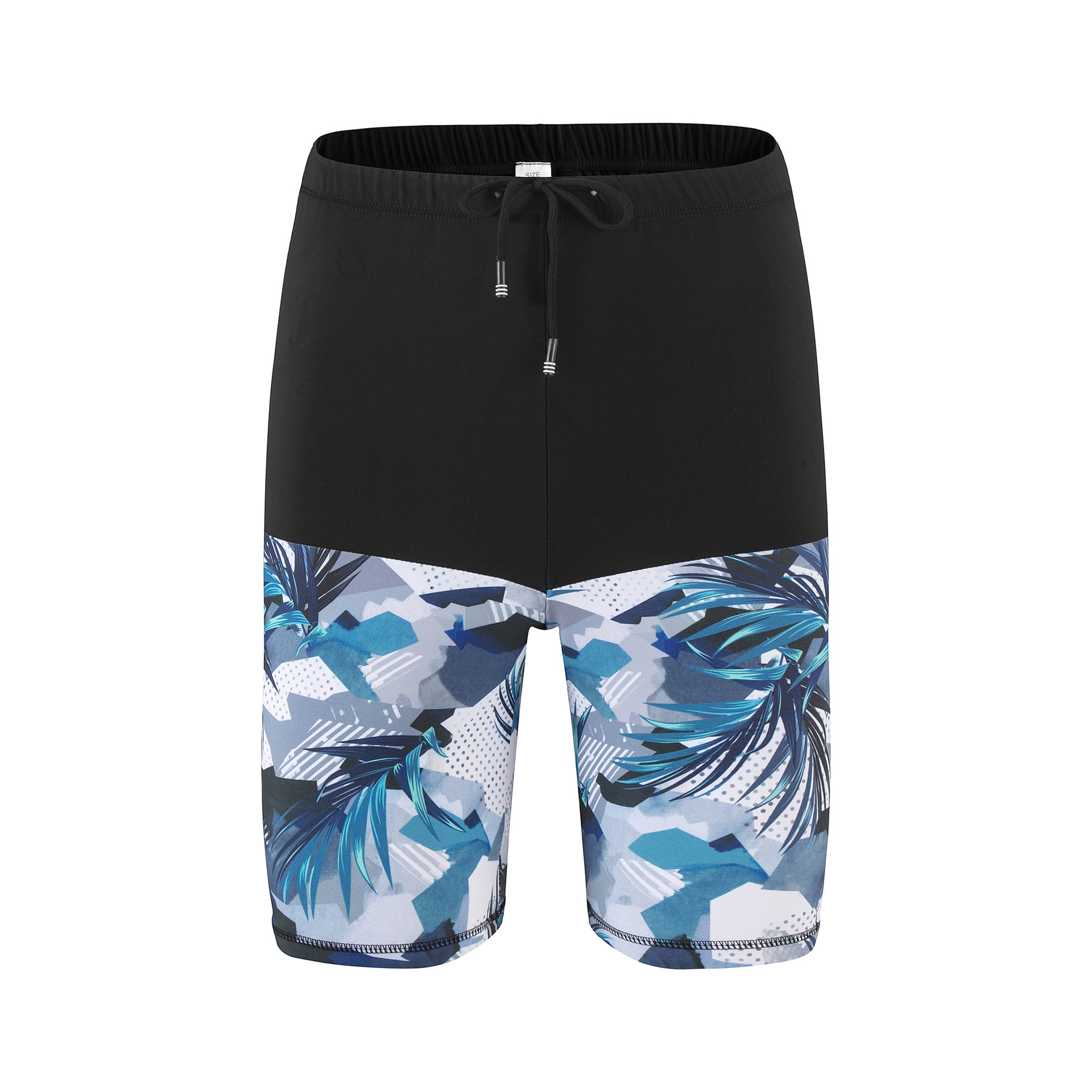 • MD5K06 수영 트렁크 블랙 바디 블루 프린트 미디엄 팬츠