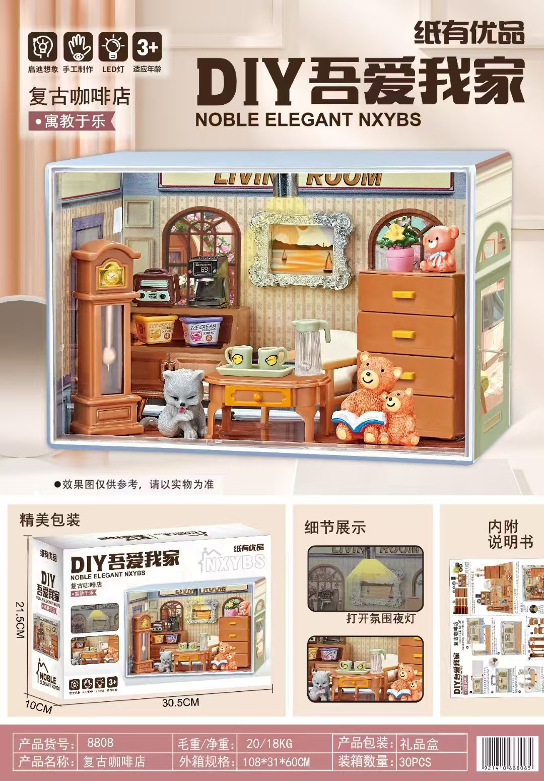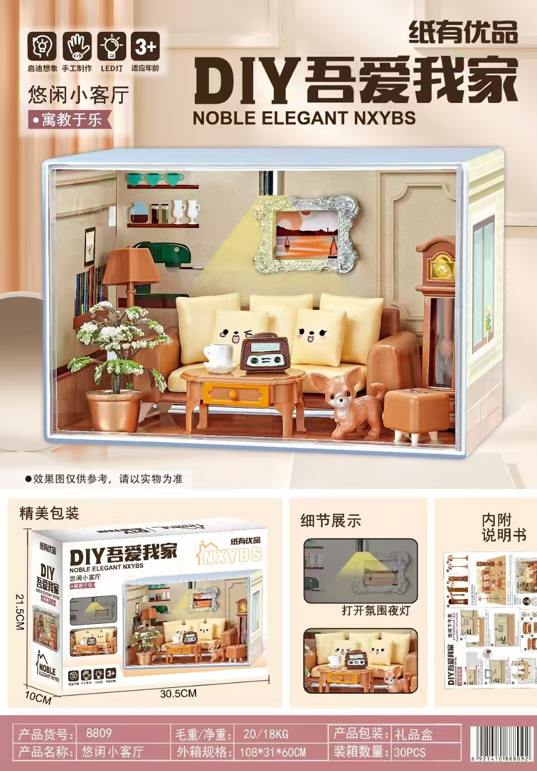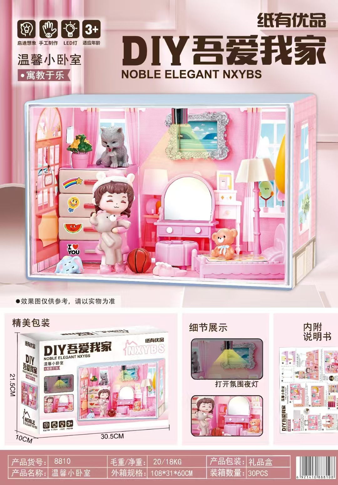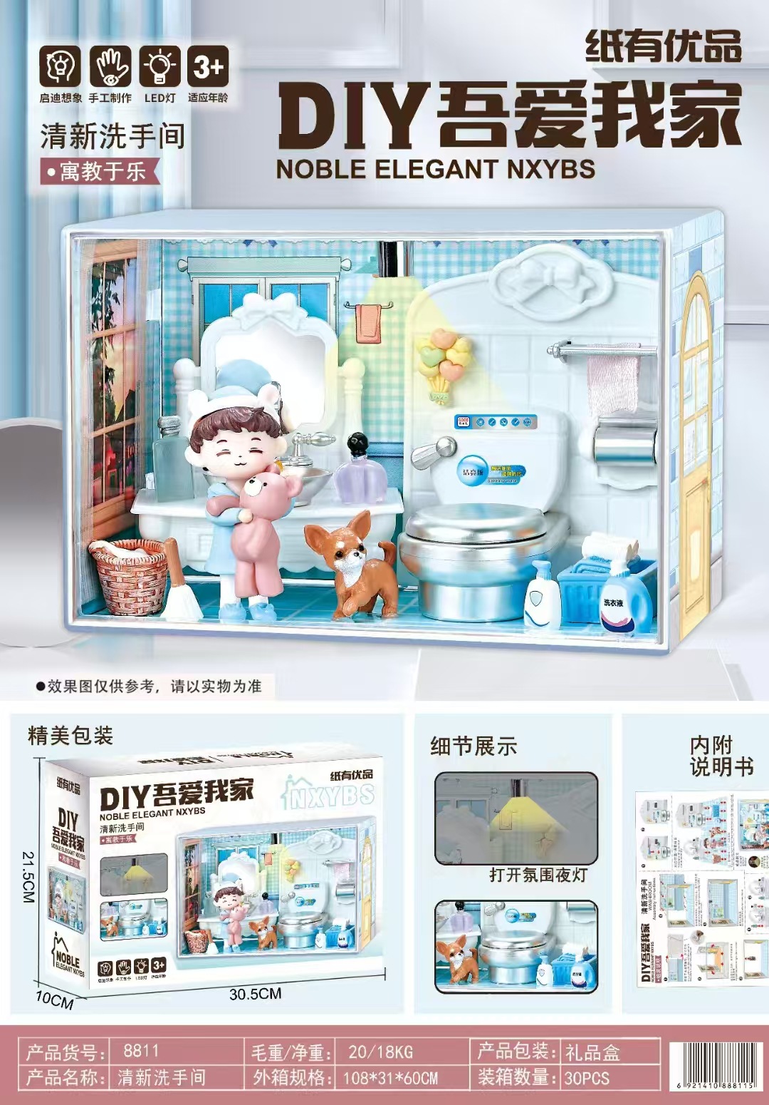 DIY 나는 내 수제 오두막을 좋아한다 미니 미니어처 세계 모델 조립 장난감 장식품 스테레오 퍼즐 선물스토어 가기