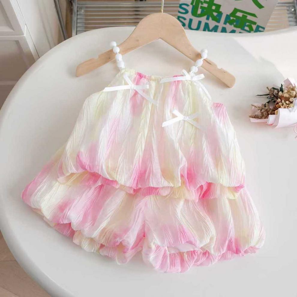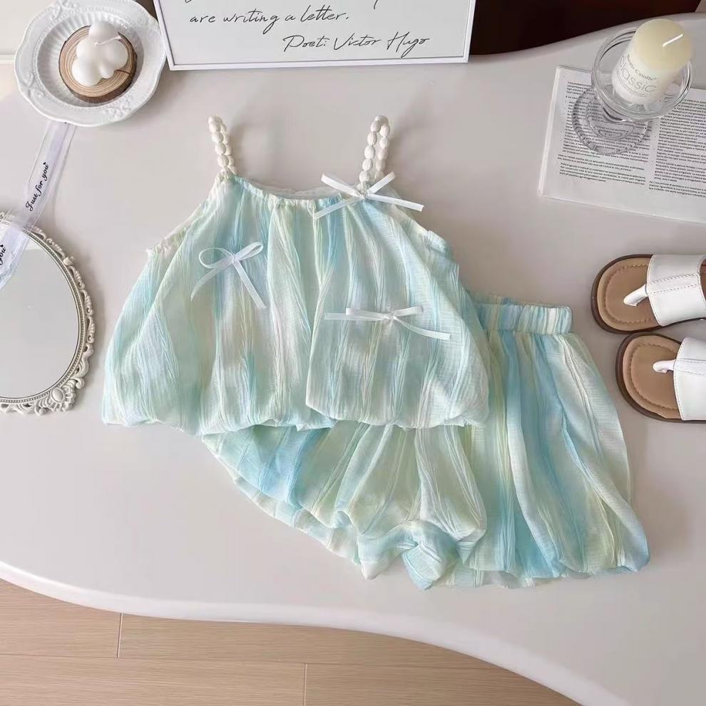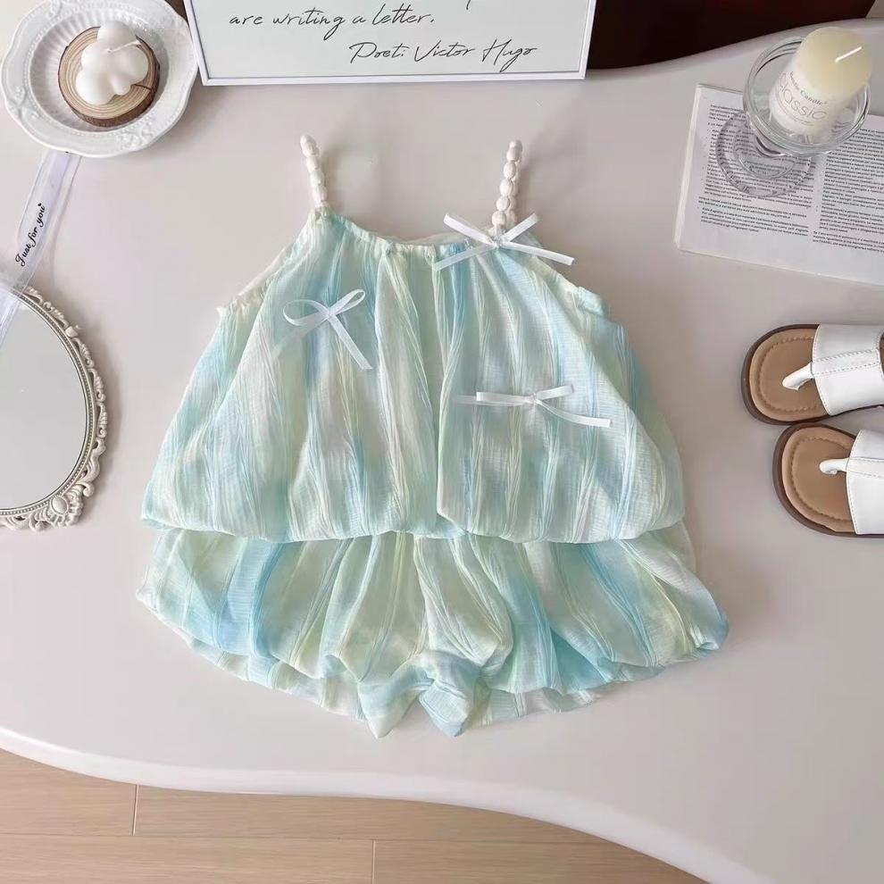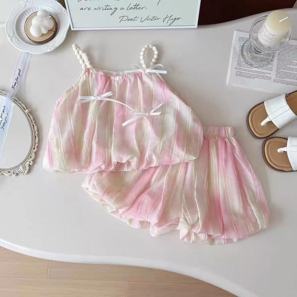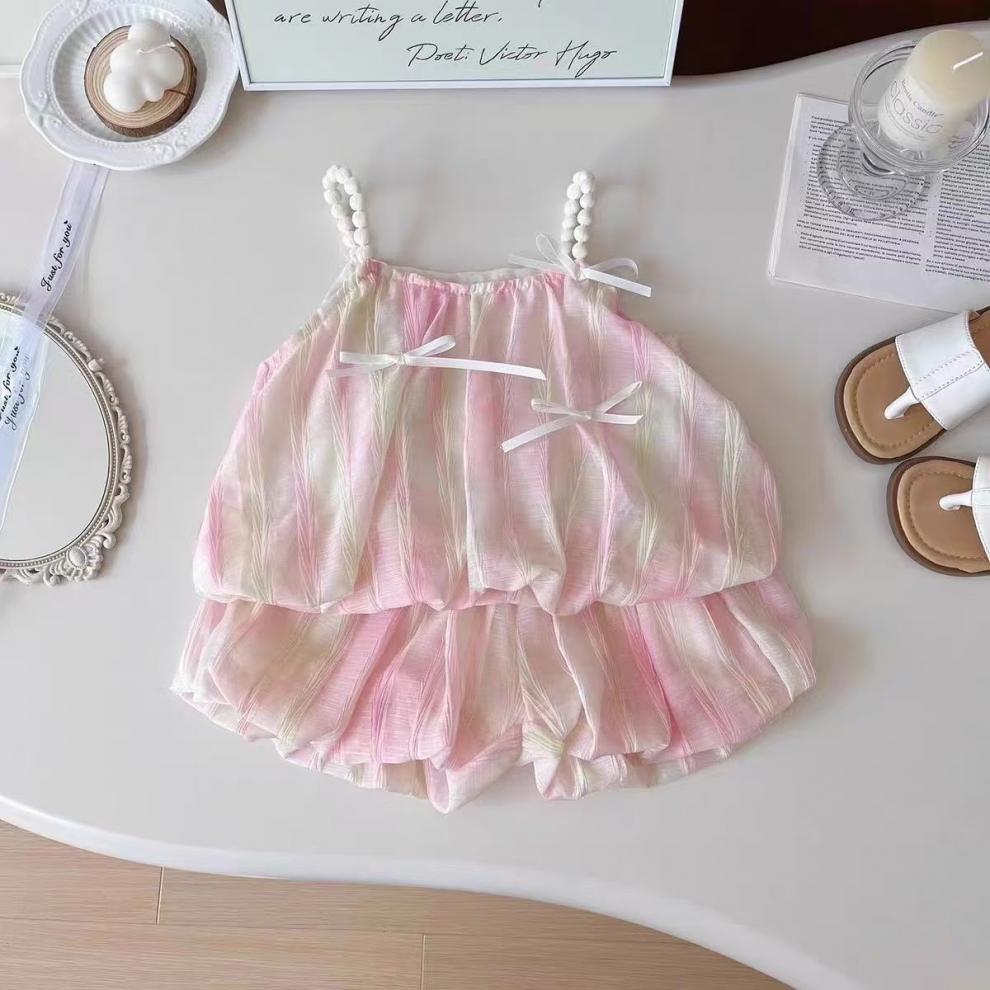 한국 스타일 여아 여름 정장 2025 새로운 어린이 반바지 서스펜더 투피스 여름 정장