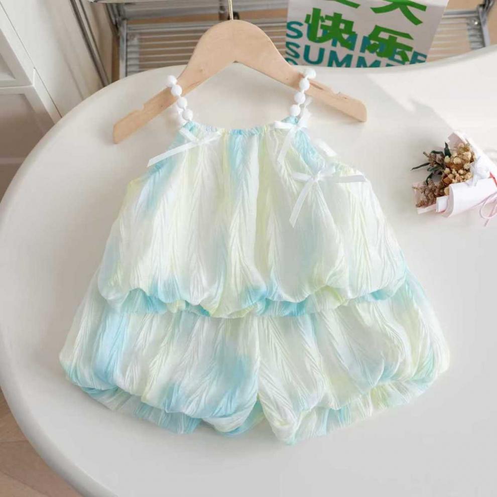 한국 스타일 여아 여름 정장 2025 새로운 어린이 반바지 서스펜더 투피스 여름 정장스토어 가기
