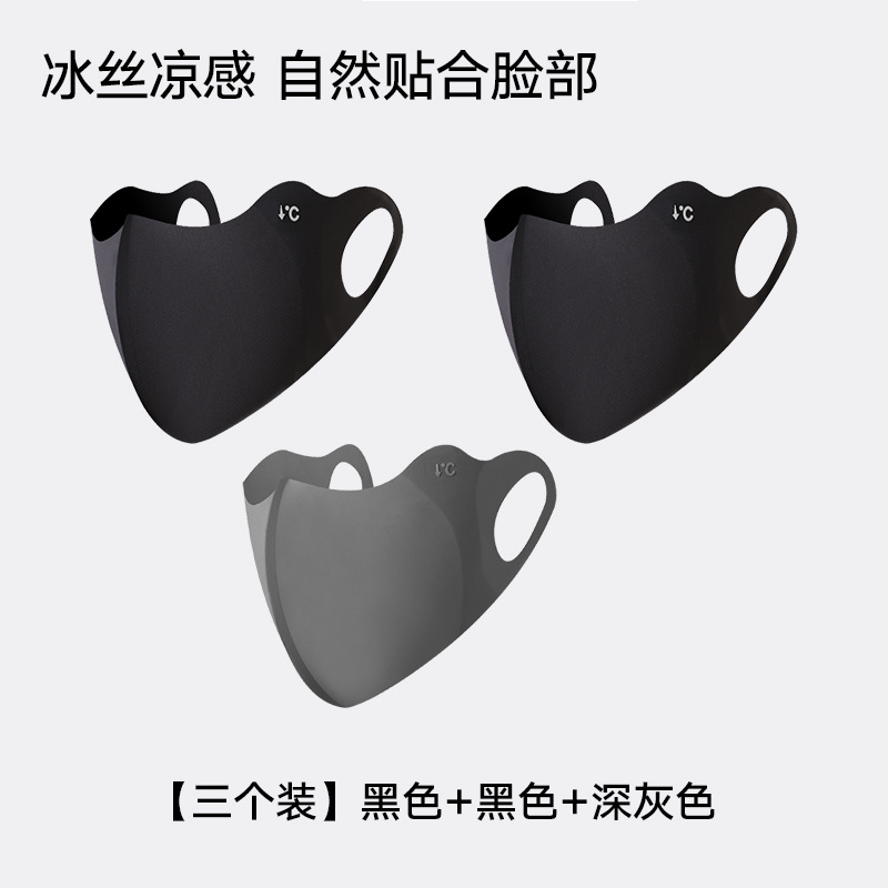 • 3팩[블랙+블랙+다크그레이] 심리스 자외선 차단 마스크