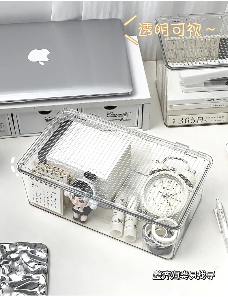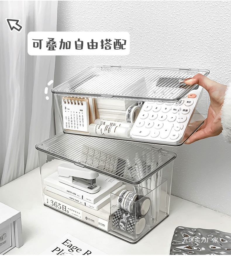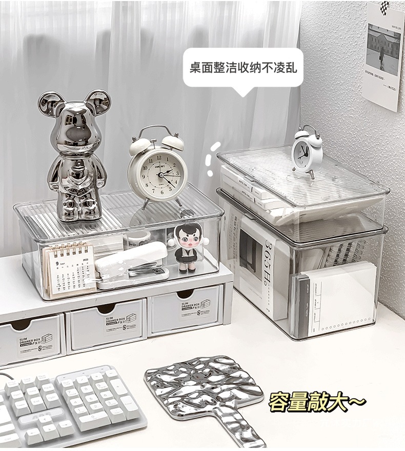아크릴 스토리지 박스 데스크탑 뚜껑 투명 스토리지 랙 데스크 화장품 액세서리 편리한 표시 플라스틱 스토리지 바구니