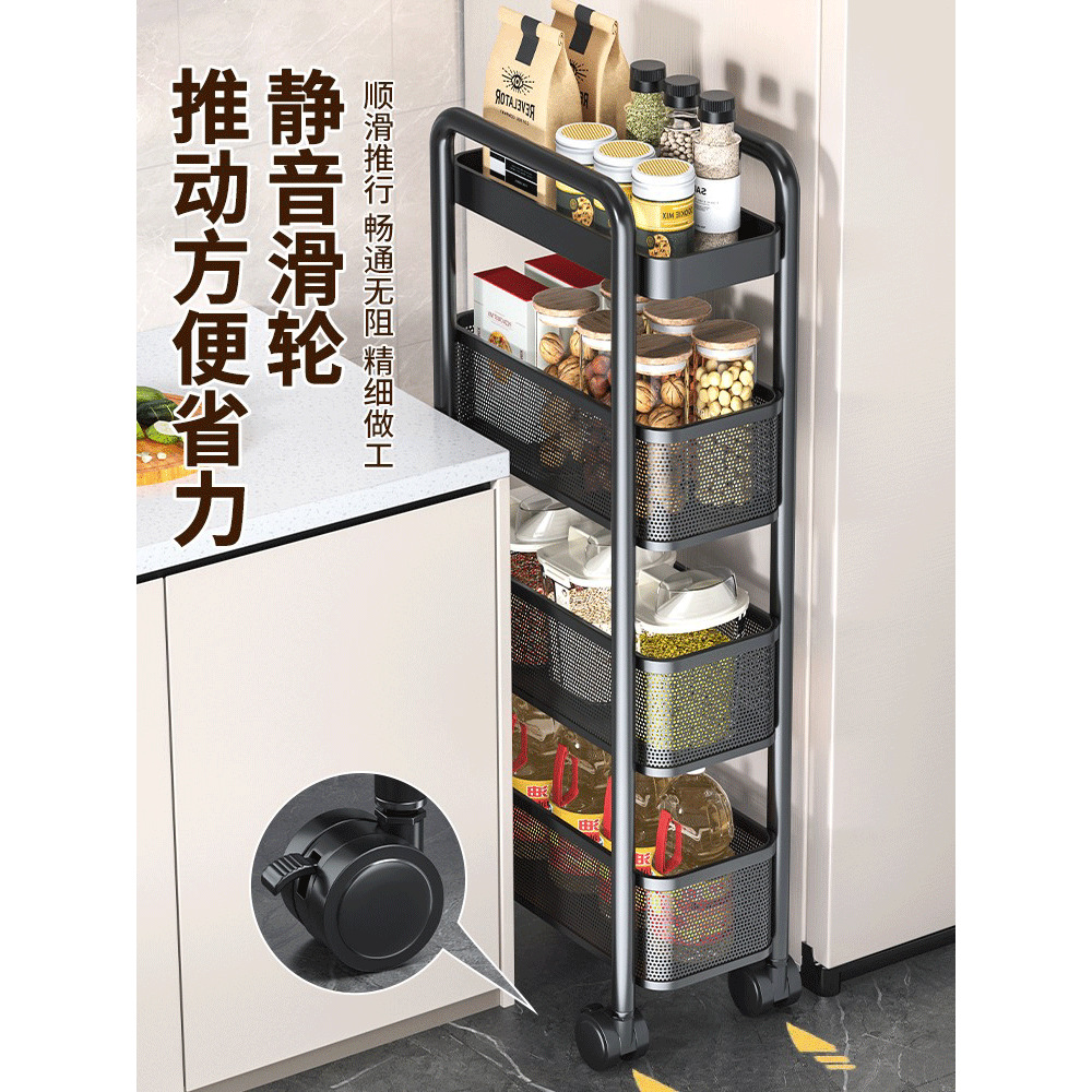 스테인레스 스틸 초소형 클립 간격 캐비닛 주방 선반 바닥 냉장고 트롤리 욕실 모바일 수납 새로운 스타일