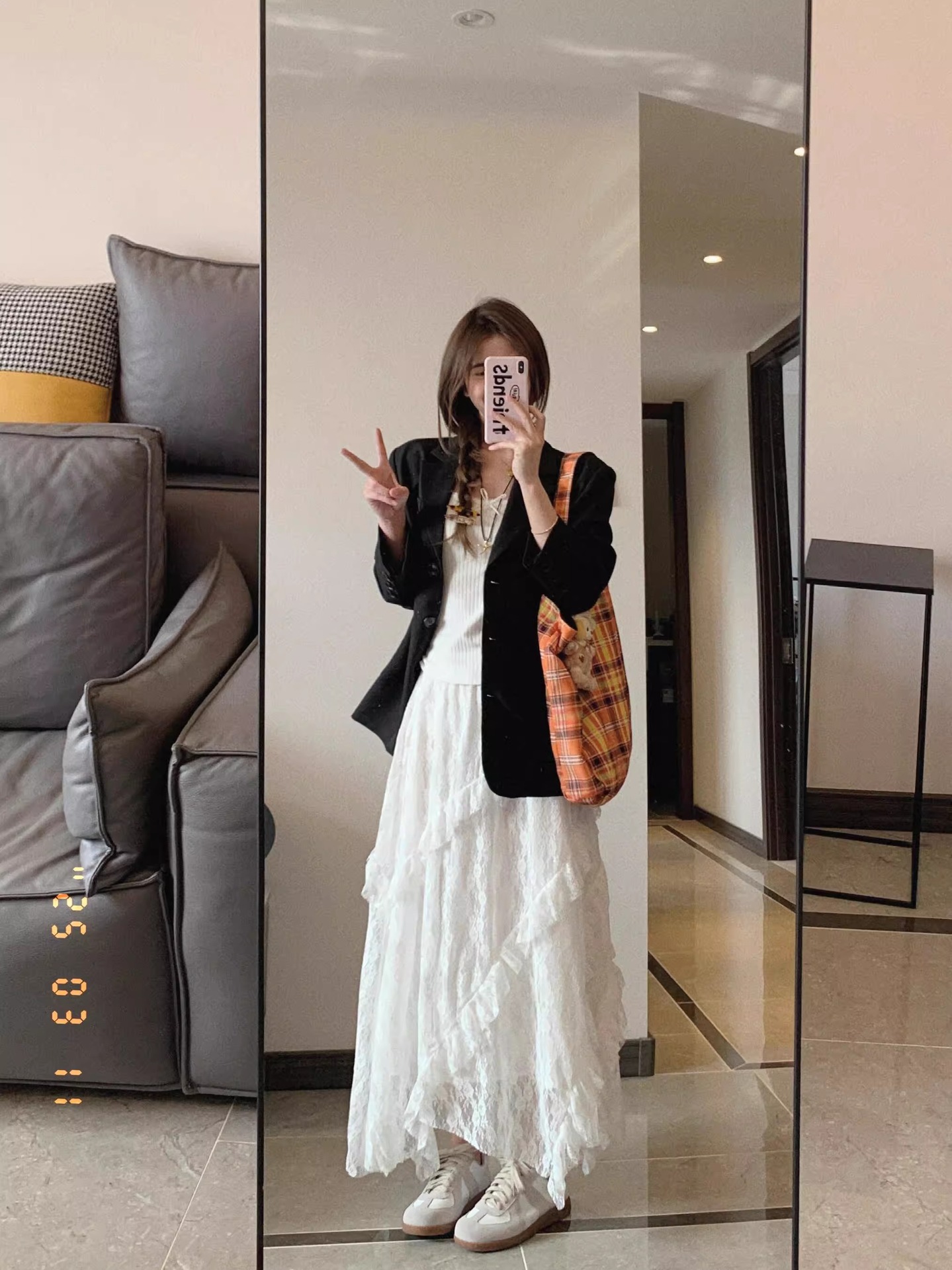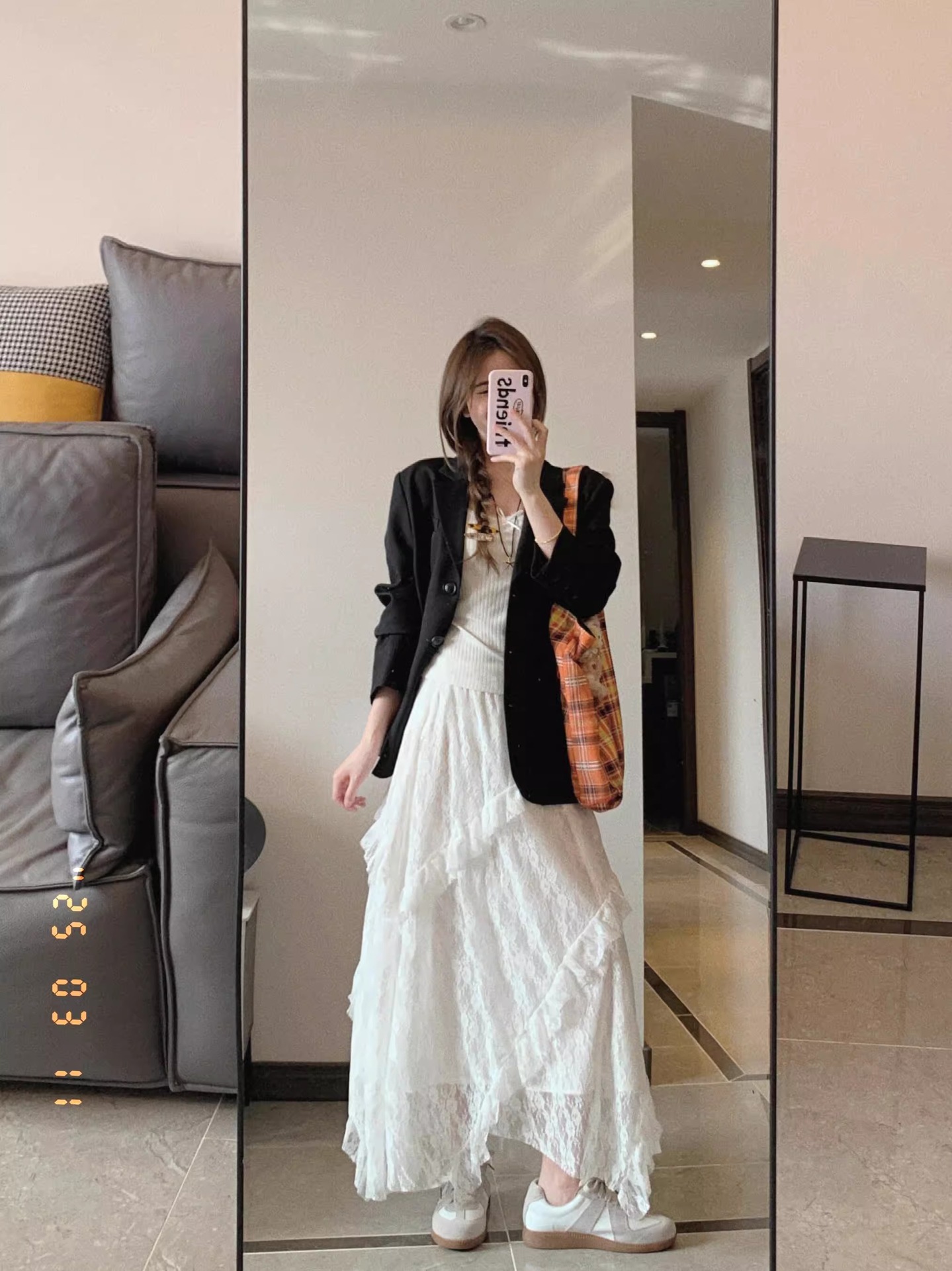 [오리지널 패브릭] 여성용 화이트 레이스 스커트 여름 하이 웨이스트 루즈 드레이프 불규칙 롱 스커트 케이크스토어 가기