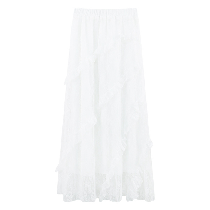 [오리지널 패브릭] 여성용 화이트 레이스 스커트 여름 하이 웨이스트 루즈 드레이프 불규칙 롱 스커트 케이크