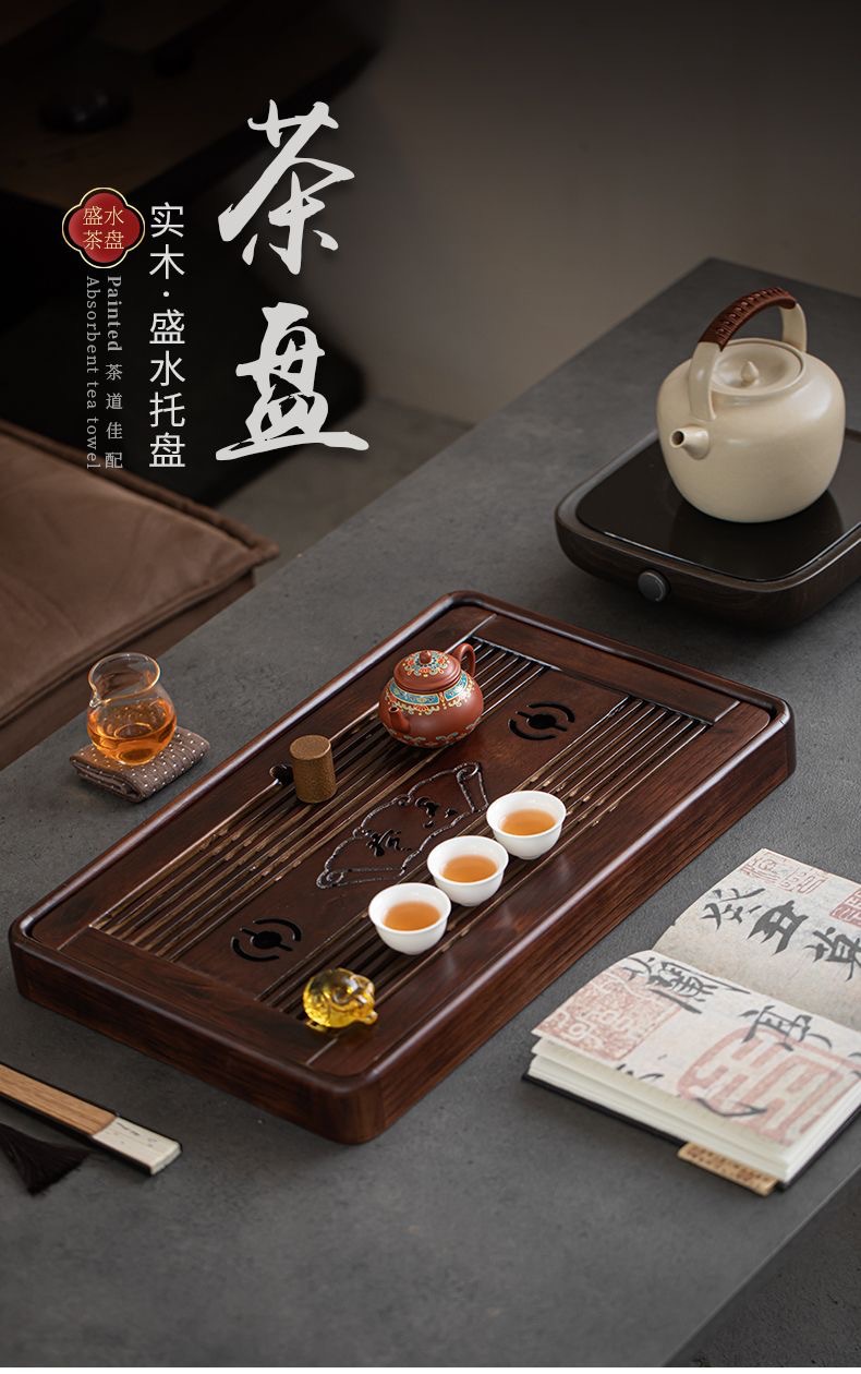 새로운 중국 스타일의 새로운 단단한 나무 차 트레이 가정용 작은 쿵푸 차 세트 차 테이블 홈 거실 물 트레이