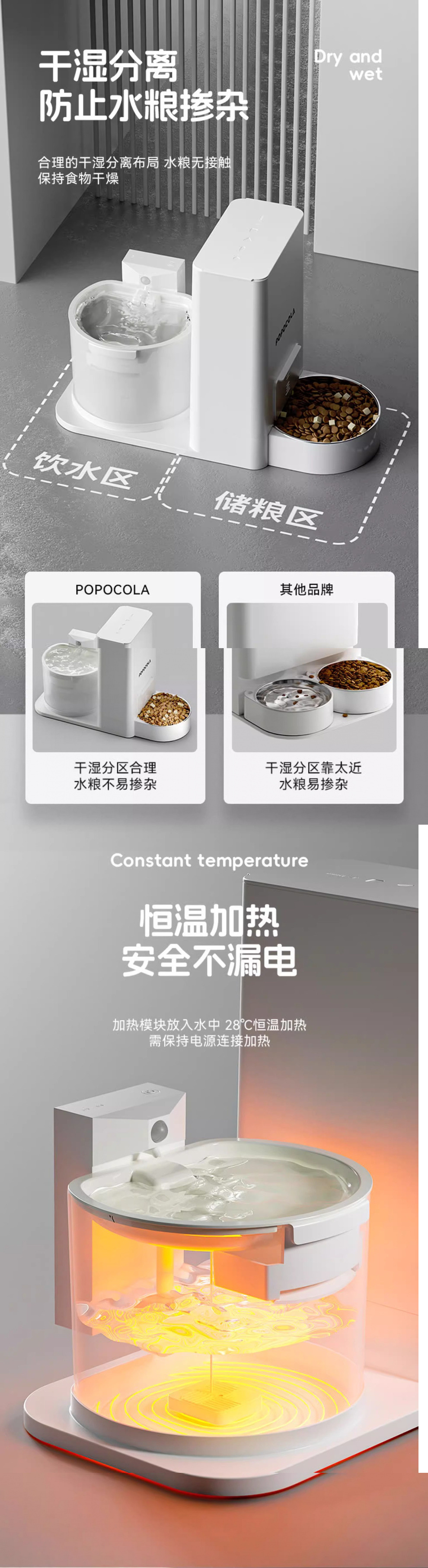온도 조절 고양이 물 디스펜서, 무선 식수 2-in-1 자동 급수기, 급수기 일체형 기계스토어 가기