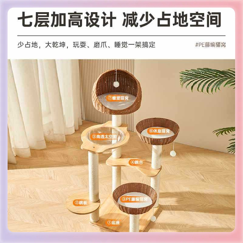 ✅ 원목 고양이 클라이밍 프레임, 고양이 트리 일체형 홈 스페이스 캡슐 PE 등나무 고양이 둥지, 고양이 클라이밍 프레임, 고양이 점프 플랫폼, 고양이스토어 가기