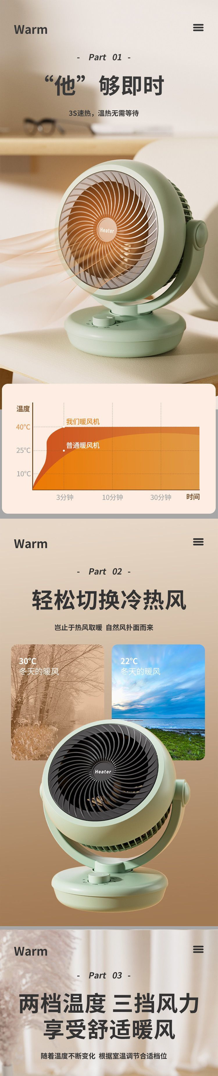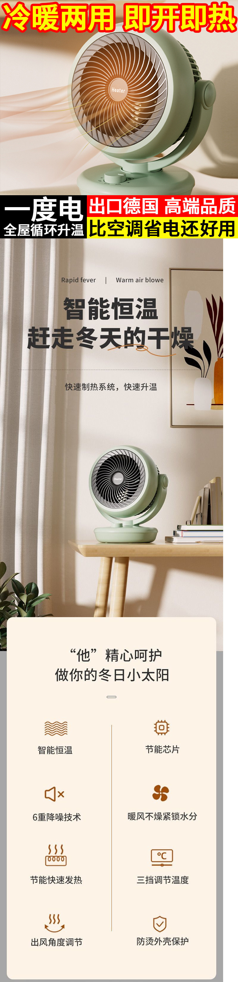 난방 팬 냉각 및 난방 이중 목적 음소거 에너지 절약 흔들림 헤드 겨울 난방 작은 팬 침실 침대 헤드 대형 전기 팬스토어 가기