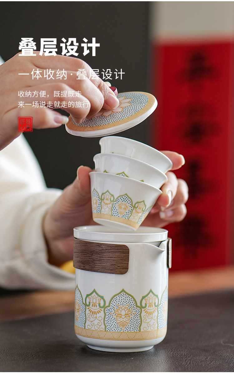 여행용 쿵푸 차 세트 소형 세트 휴대용 야외 싱글 캠핑 차 마시는 장비 세라믹 주전자 퀵 컵스토어 가기