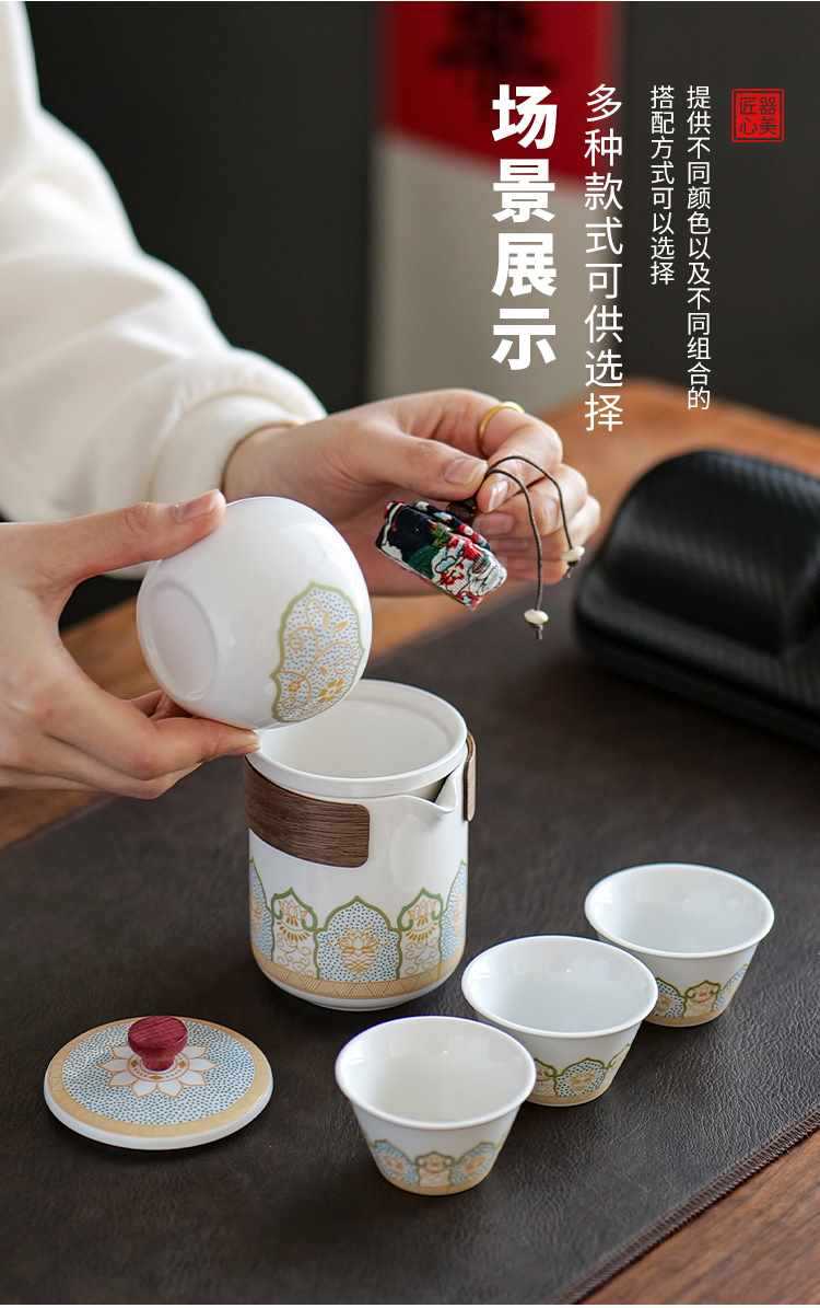 여행용 쿵푸 차 세트 소형 세트 휴대용 야외 싱글 캠핑 차 마시는 장비 세라믹 주전자 퀵 컵