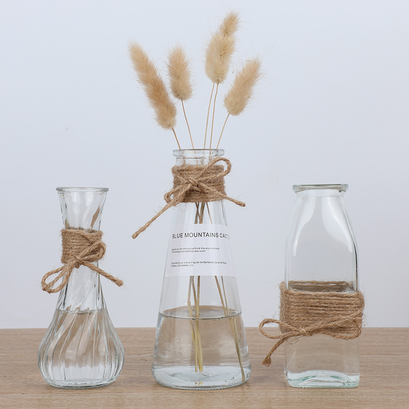 투명한 유리 꽃병 북유럽 작은 신선한 거실 장식 작은 꽃병 등나무 휘발성 아로마 테라피 병 도매