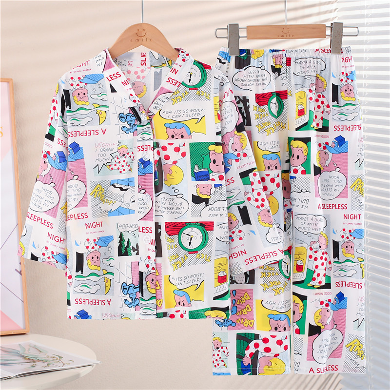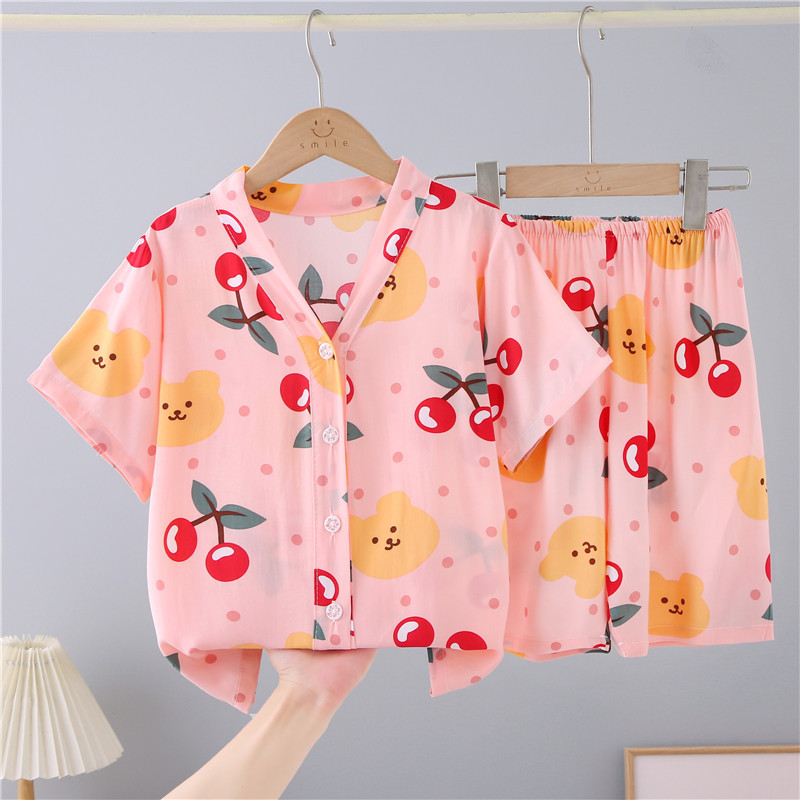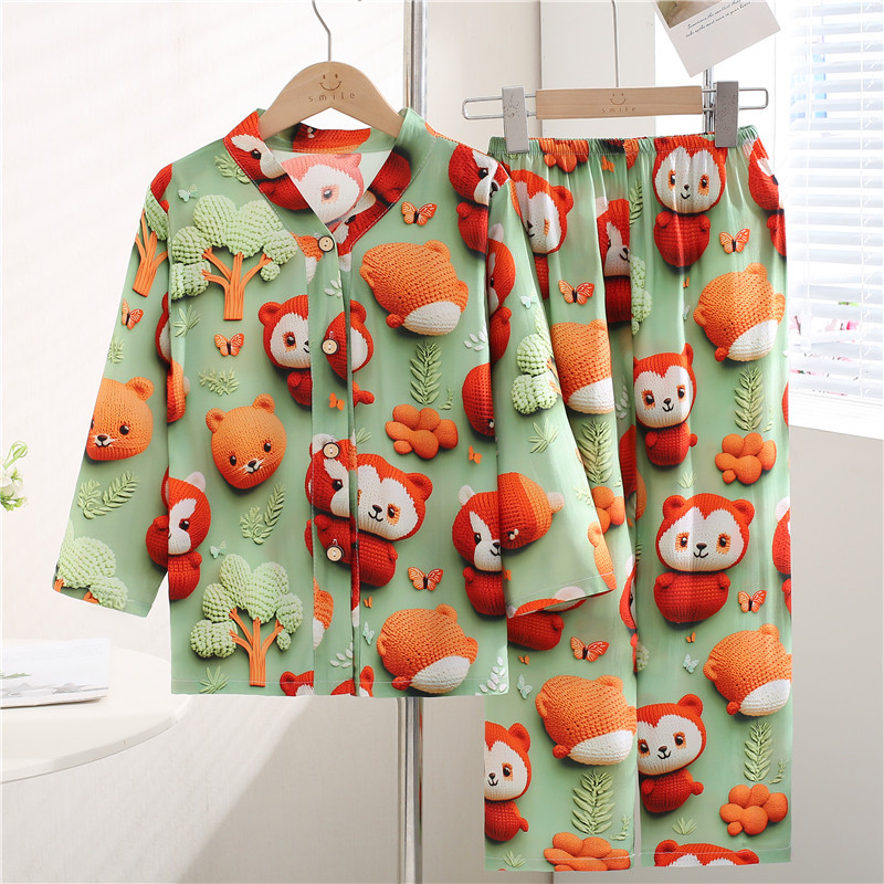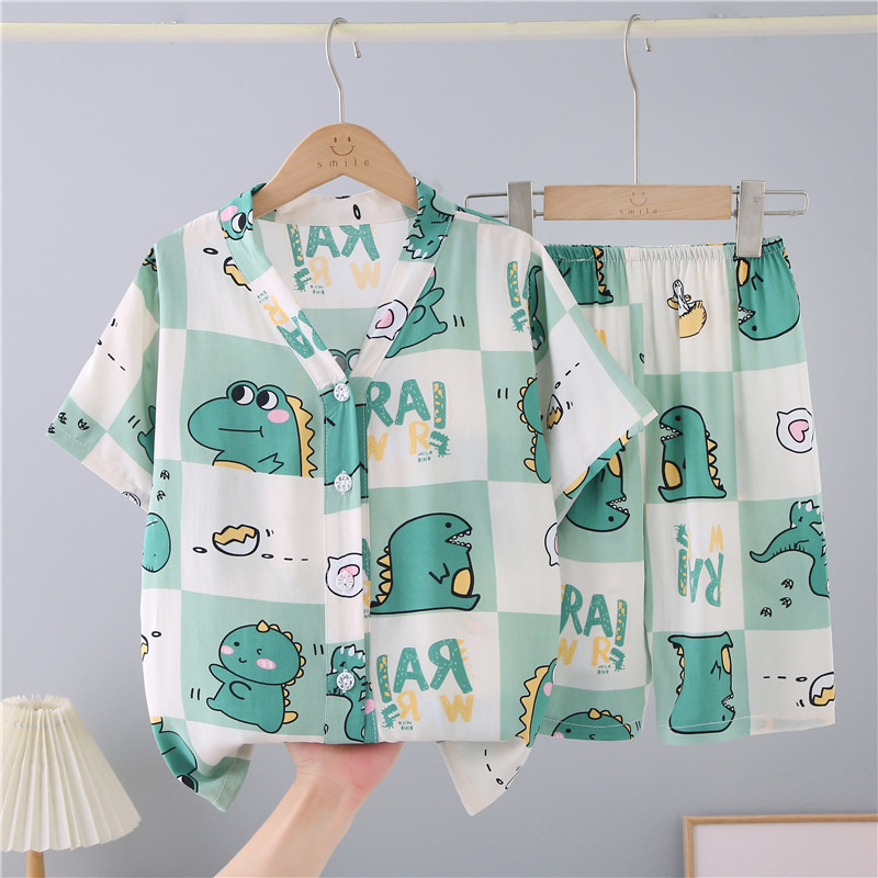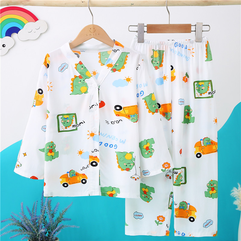 여름 새로운 어린이 가정 옷 소년 에어컨 옷 캐주얼 소녀 면 실크 세트 얇은 아기 잠옷스토어 가기