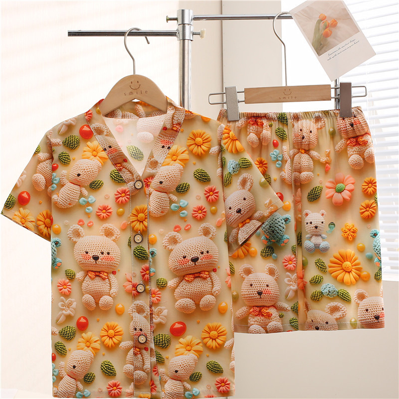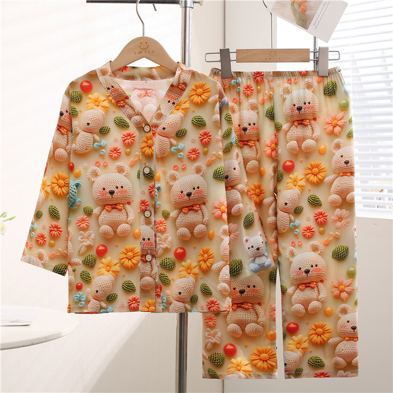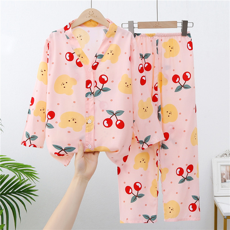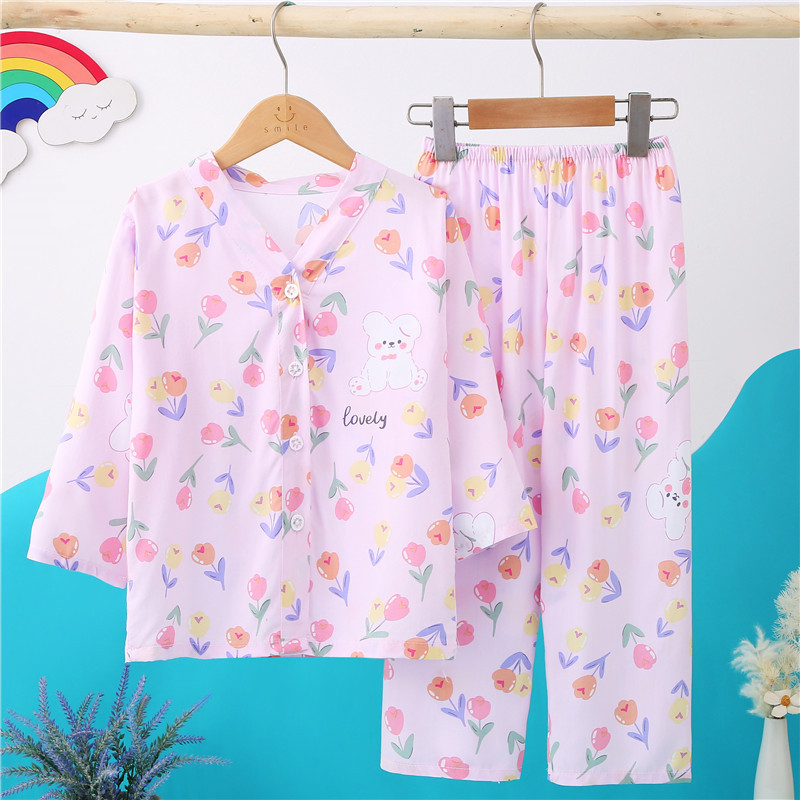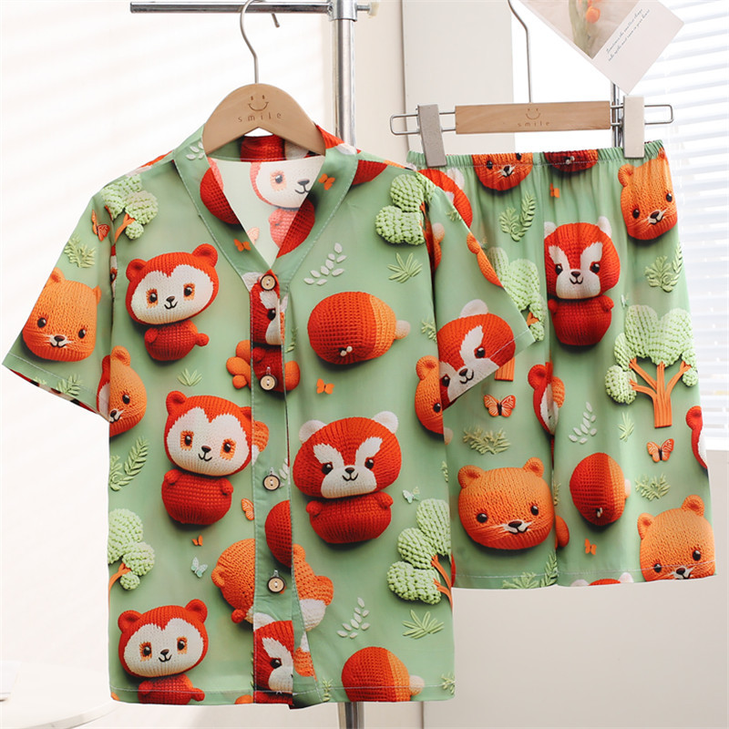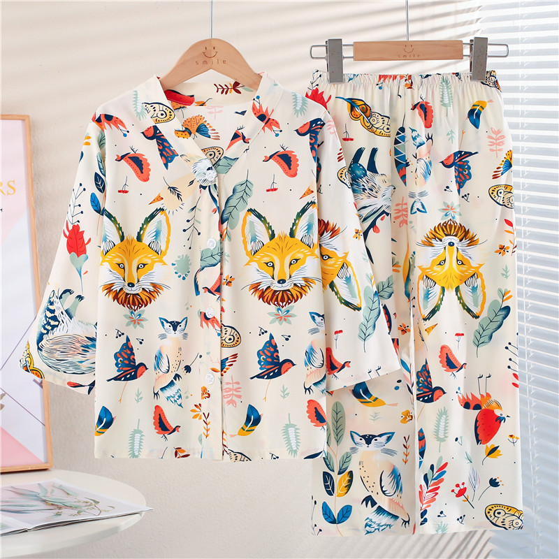 여름 새로운 어린이 가정 옷 소년 에어컨 옷 캐주얼 소녀 면 실크 세트 얇은 아기 잠옷스토어 가기