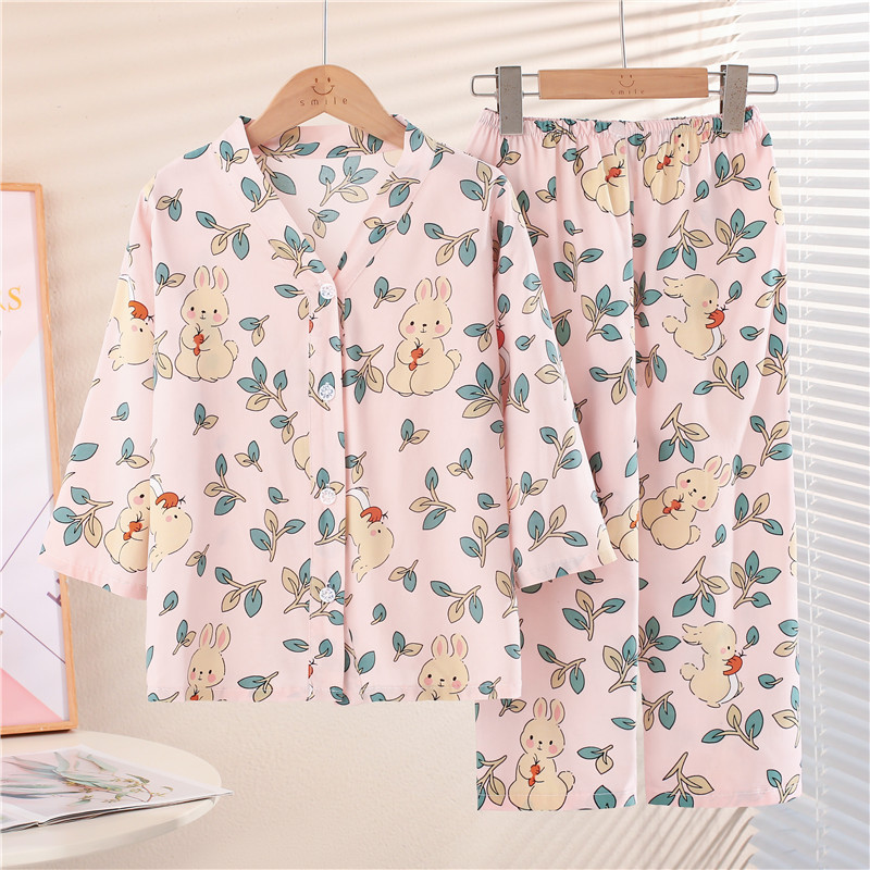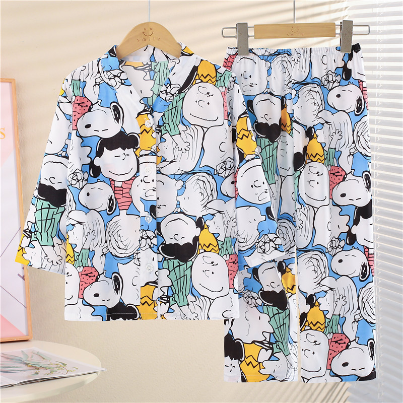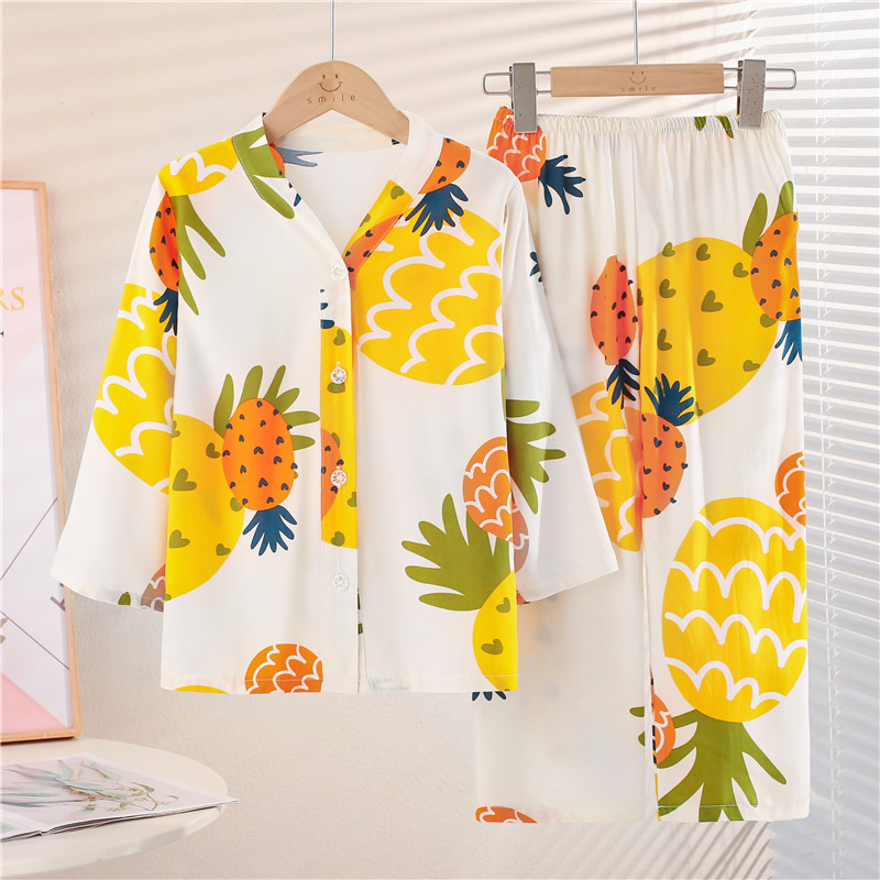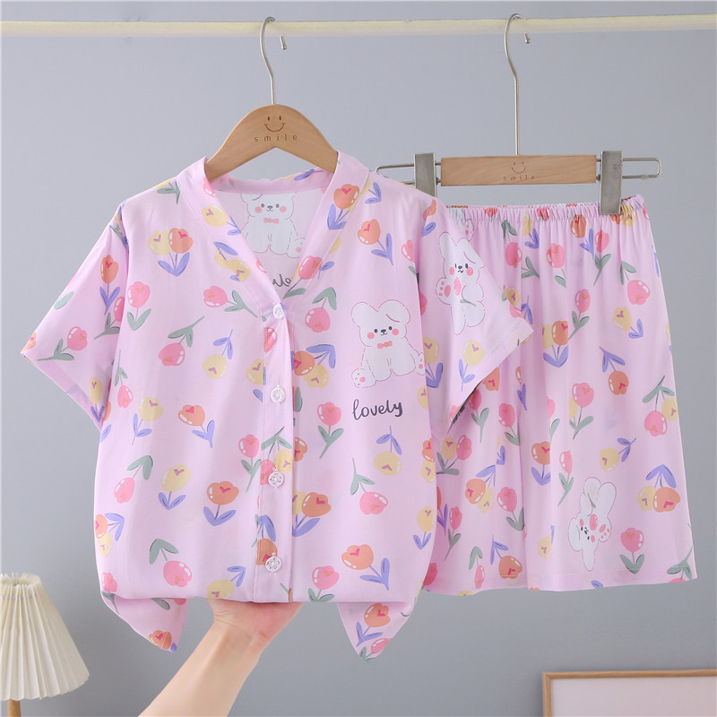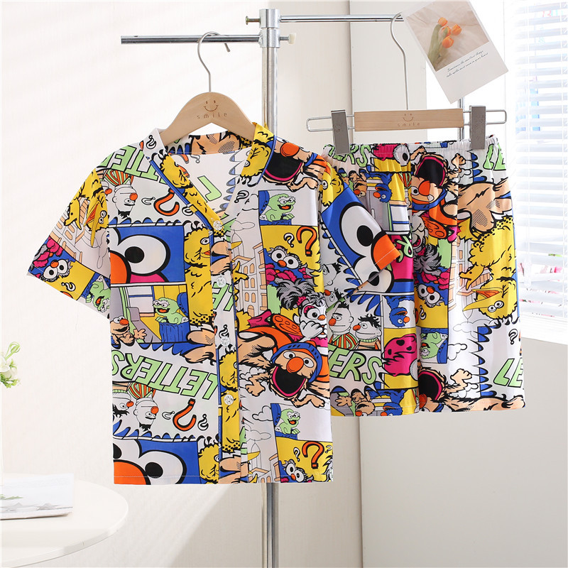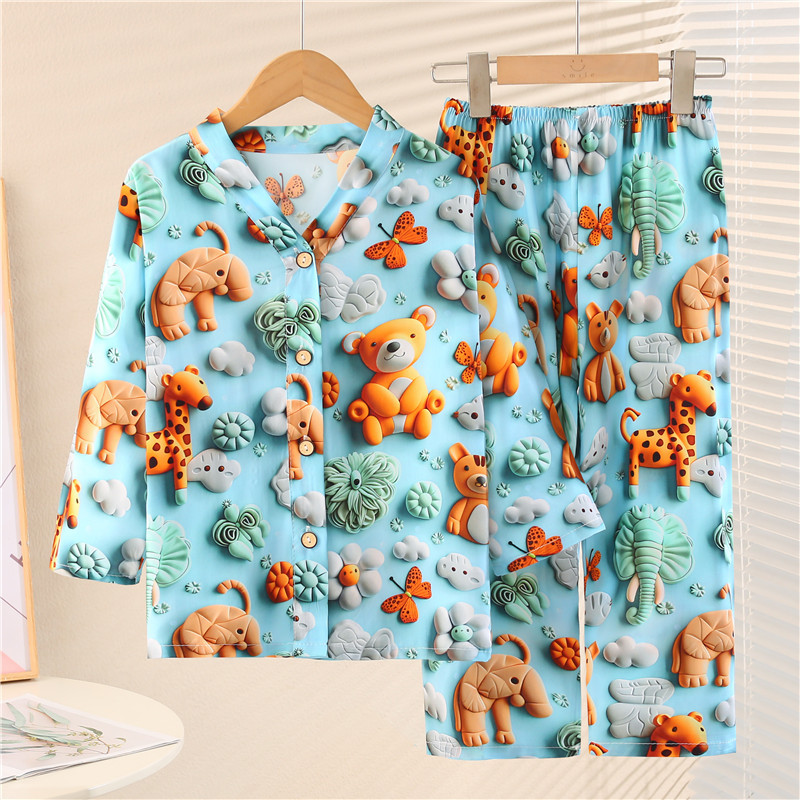 여름 새로운 어린이 가정 옷 소년 에어컨 옷 캐주얼 소녀 면 실크 세트 얇은 아기 잠옷