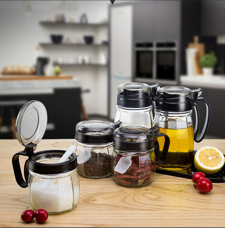 주방 3피스 유리 조미료 병 가정용 조미료 뚜껑 조합 세트 인터넷 연예인 주방 오일 포트 조미료 항아리