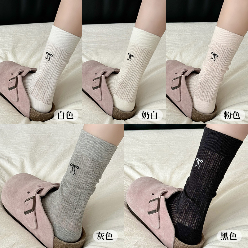흰색 활 양말 여성 튜브 양말 여름 얇은 작은 가죽 신발 발레 바람 긴 파일 양말면 여름스토어 가기