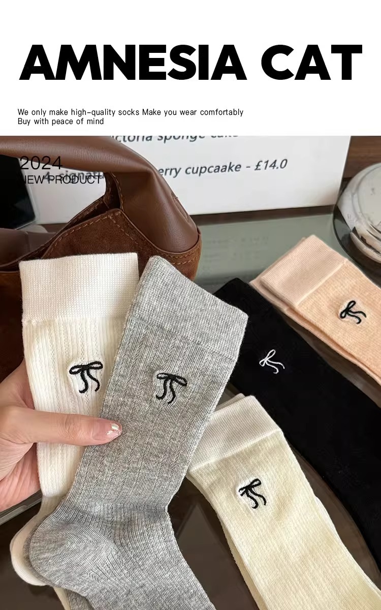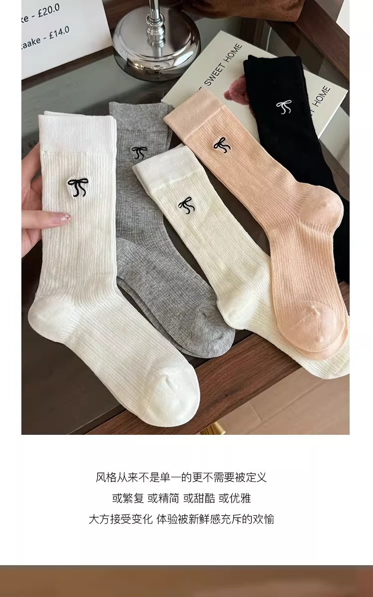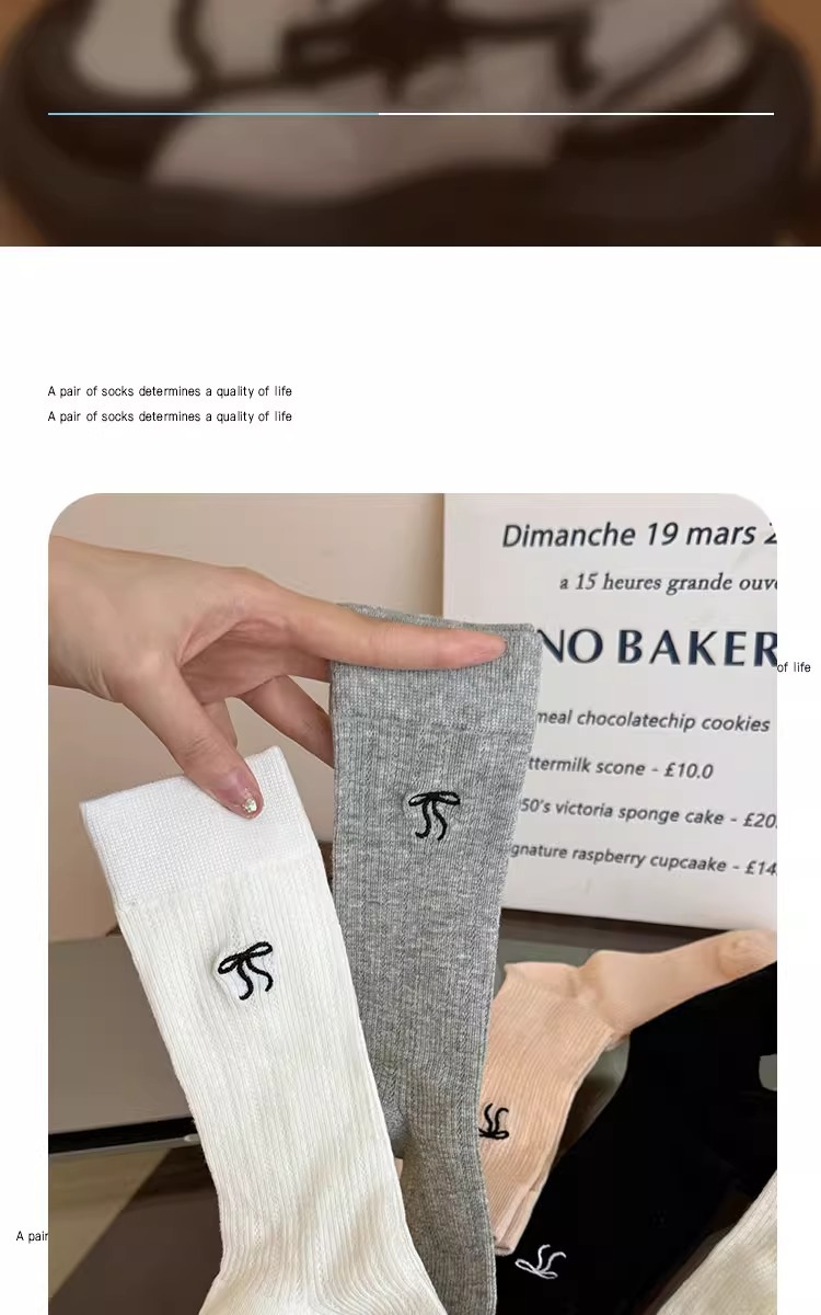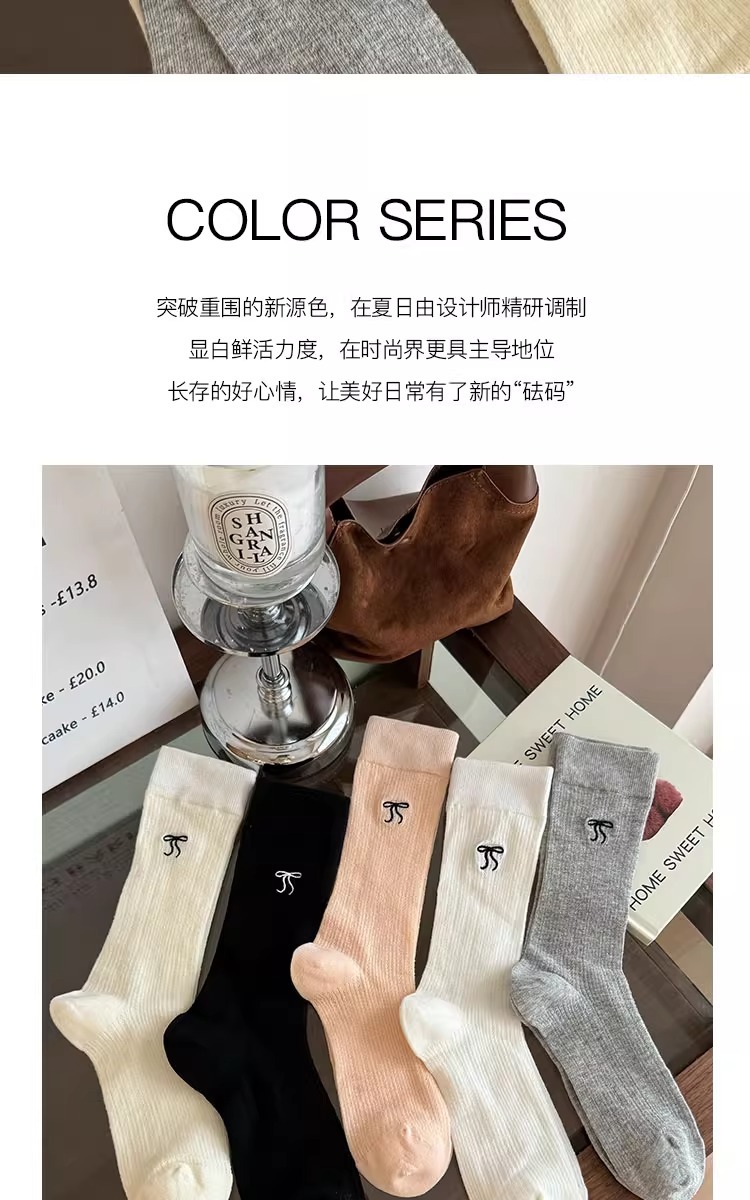 흰색 활 양말 여성 튜브 양말 여름 얇은 작은 가죽 신발 발레 바람 긴 파일 양말면 여름