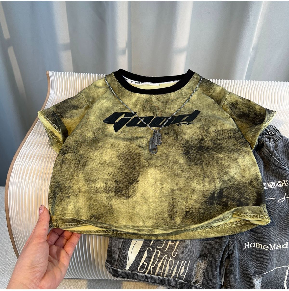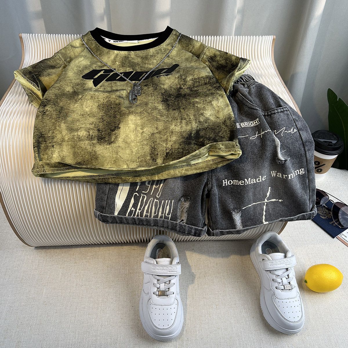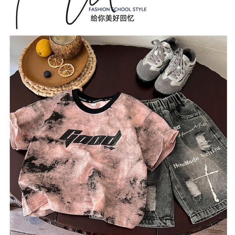 소년 여름 옷 세트 2025 새로운 도착 이피 잘 생긴 아이들의 반팔 티셔츠 아기 소년 여름 트렌디 쿨 얇은 옷스토어 가기