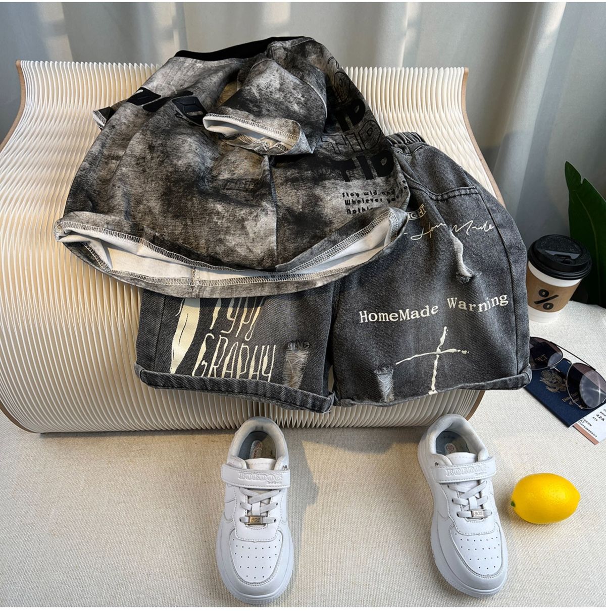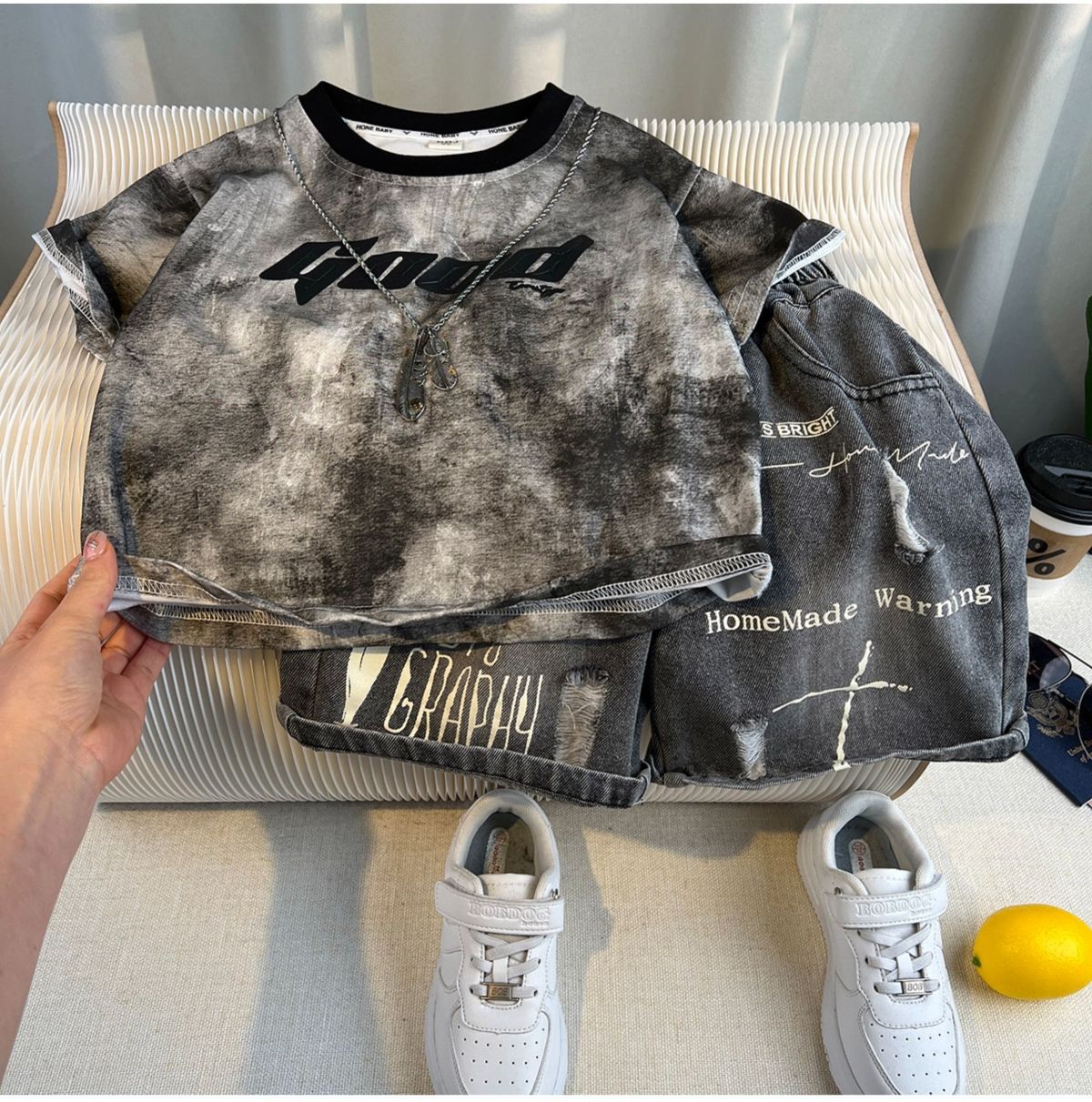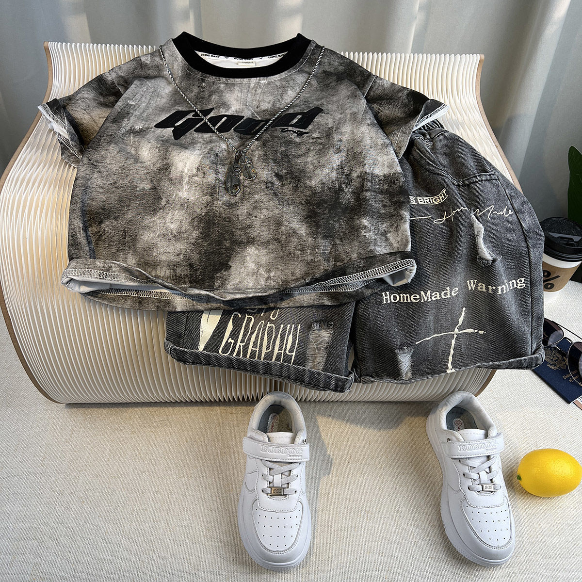 소년 여름 옷 세트 2025 새로운 도착 이피 잘 생긴 아이들의 반팔 티셔츠 아기 소년 여름 트렌디 쿨 얇은 옷스토어 가기
