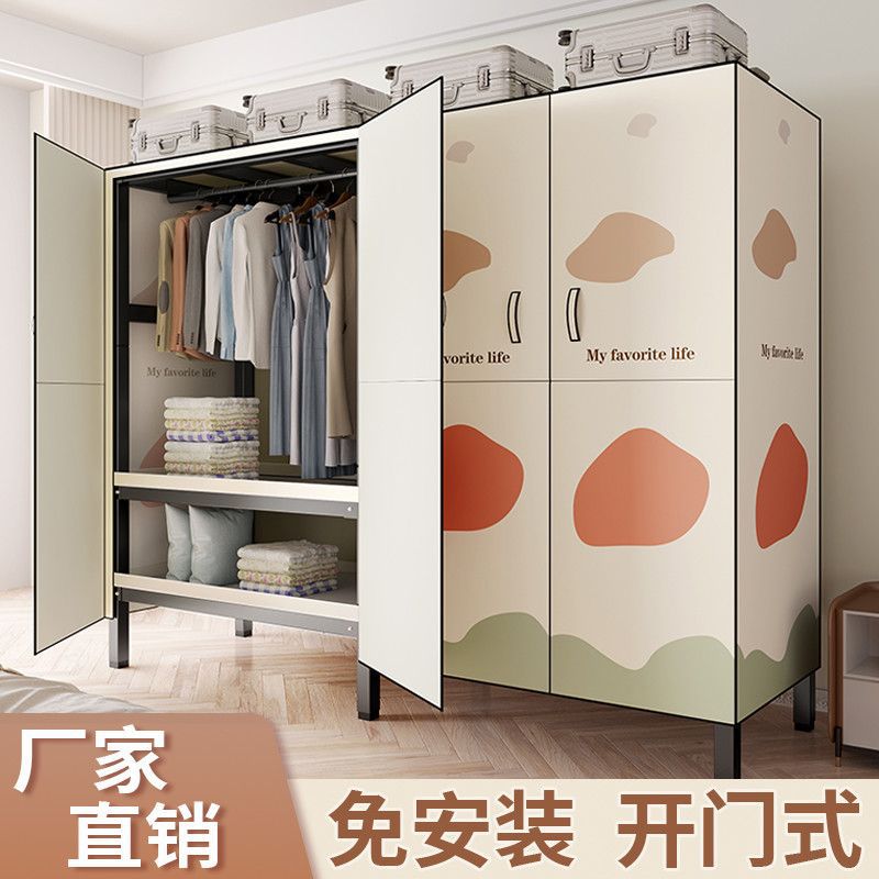 캐비닛 보관 캐비닛 간단한 보관 캐비닛 침실 천 임대 주택 구조 옷장 강철 프레임 가정용 간단한 옷장 조립