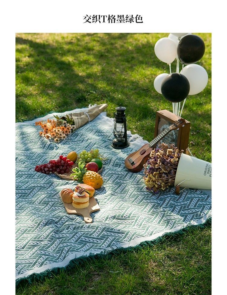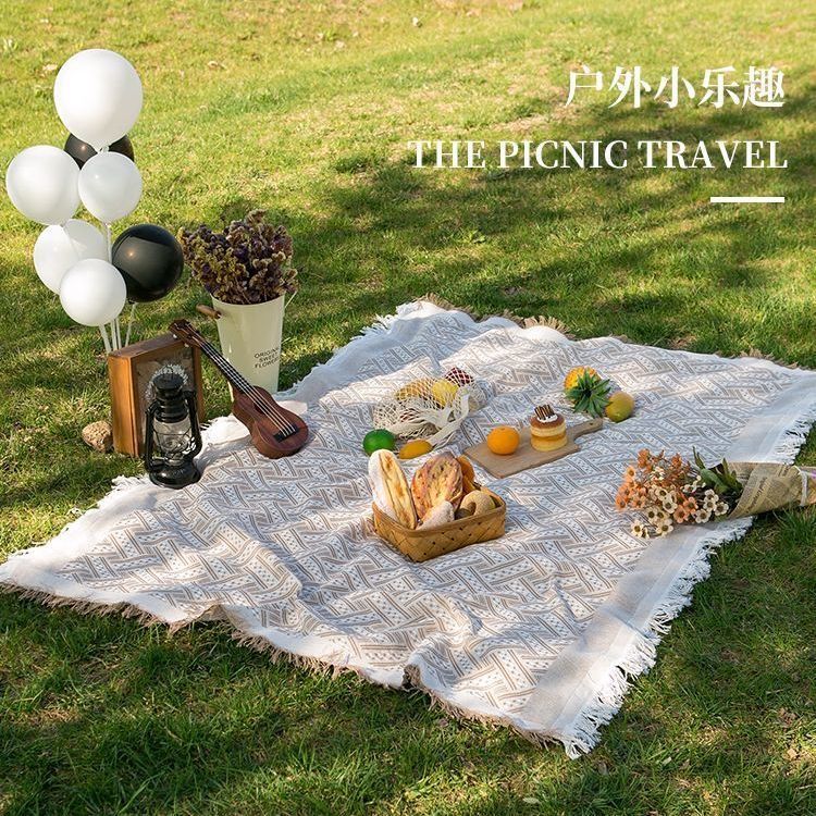 Ins 스타일 비치 매트 두꺼운 흰색 야외 캠핑 매트 피크닉 매트 피크닉 천 인터넷 연예인 용품 소품 식탁보스토어 가기