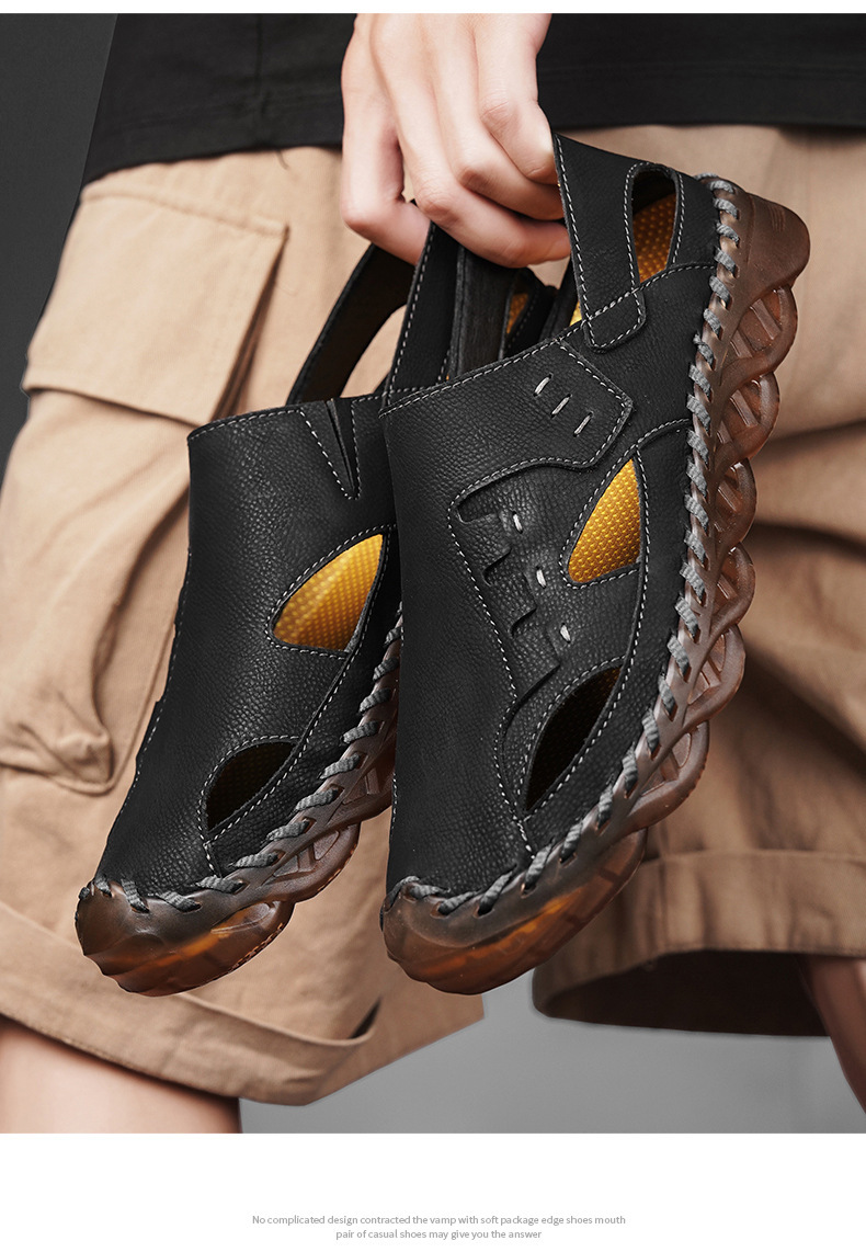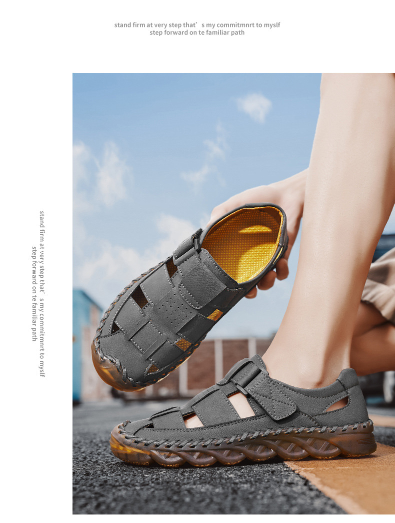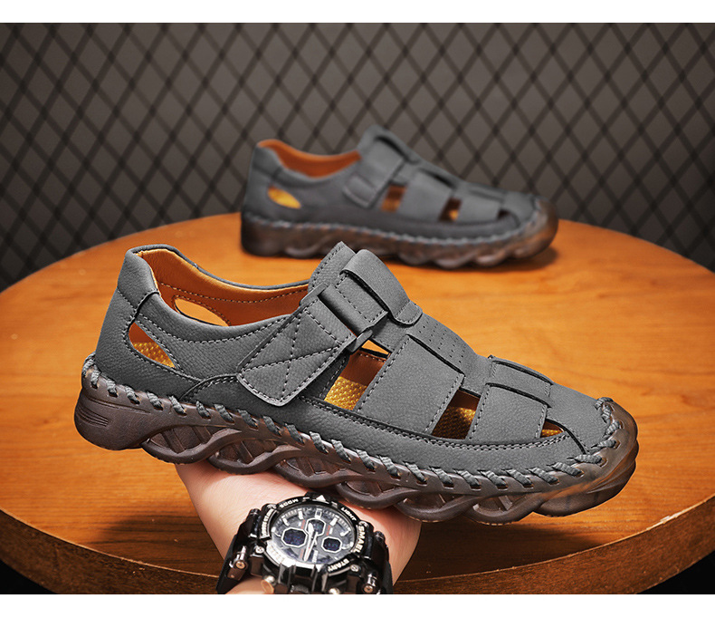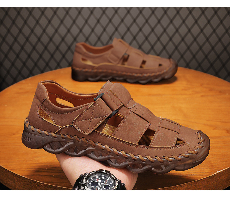 크로스보더 대형 샌들 남성 트렌디 할로우 샌들 2025 여름 캐주얼 남성 신발 캐주얼 가죽 신발 샌들스토어 가기