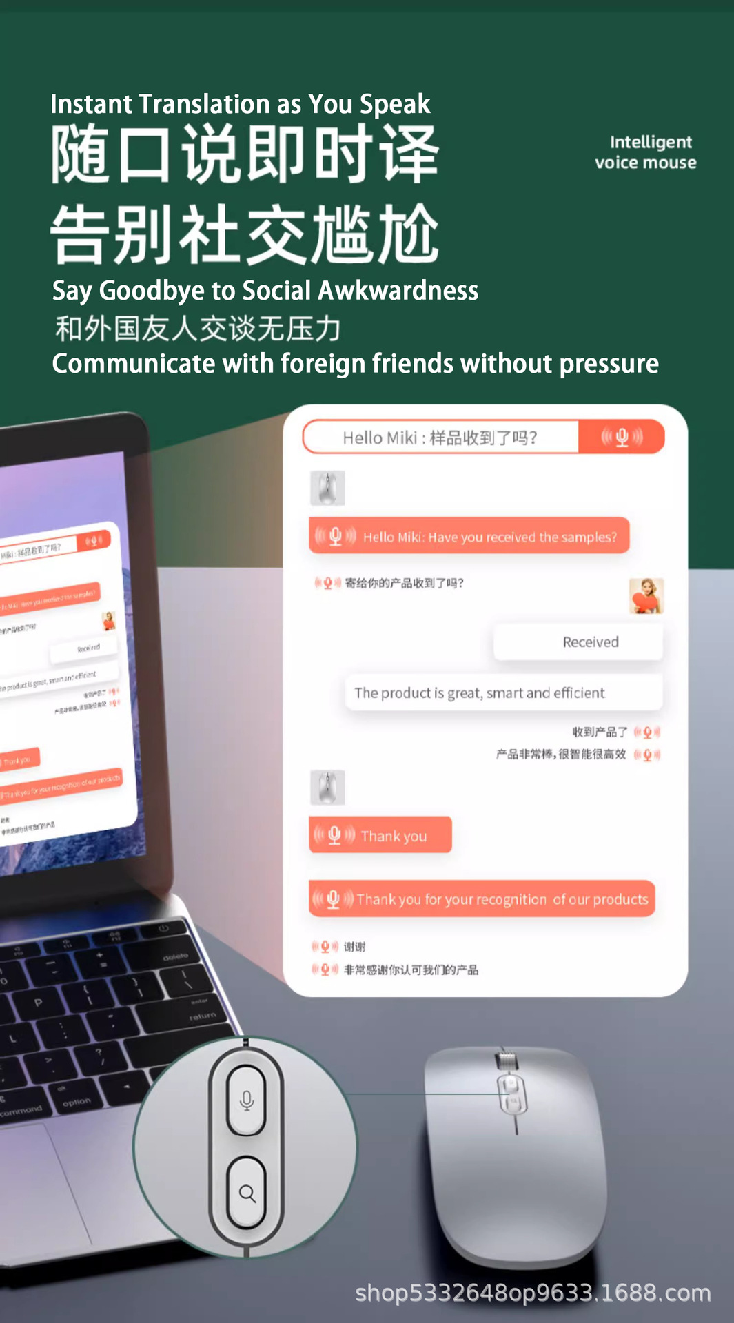 동남아시아 인공지능 AI 음성 마우스 무선 블루투스 번역 작성 양식 PPT 다국어 지원스토어 가기