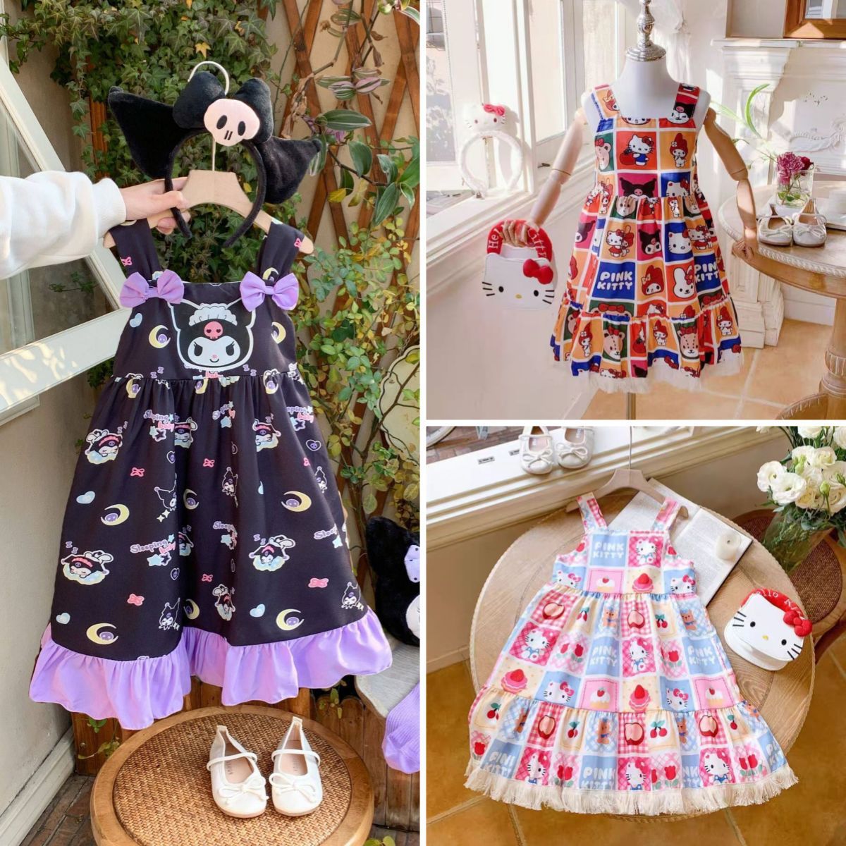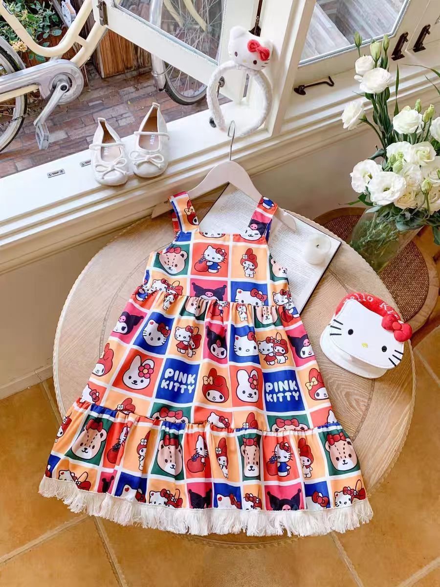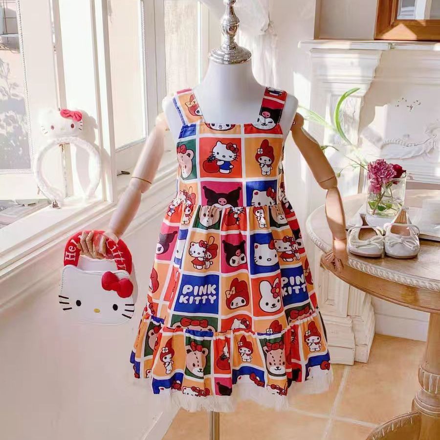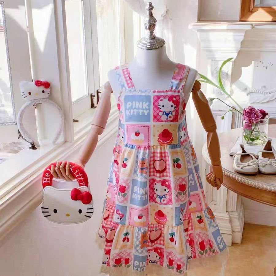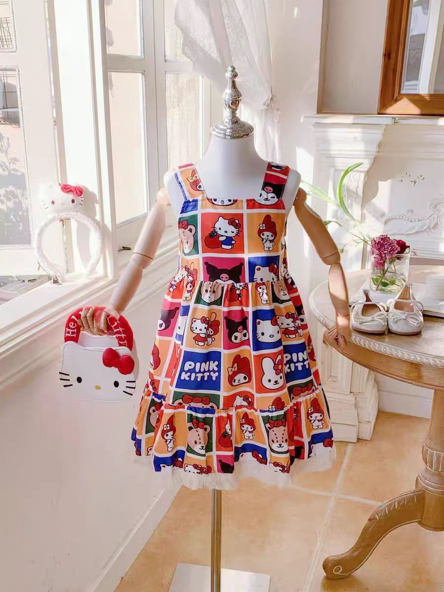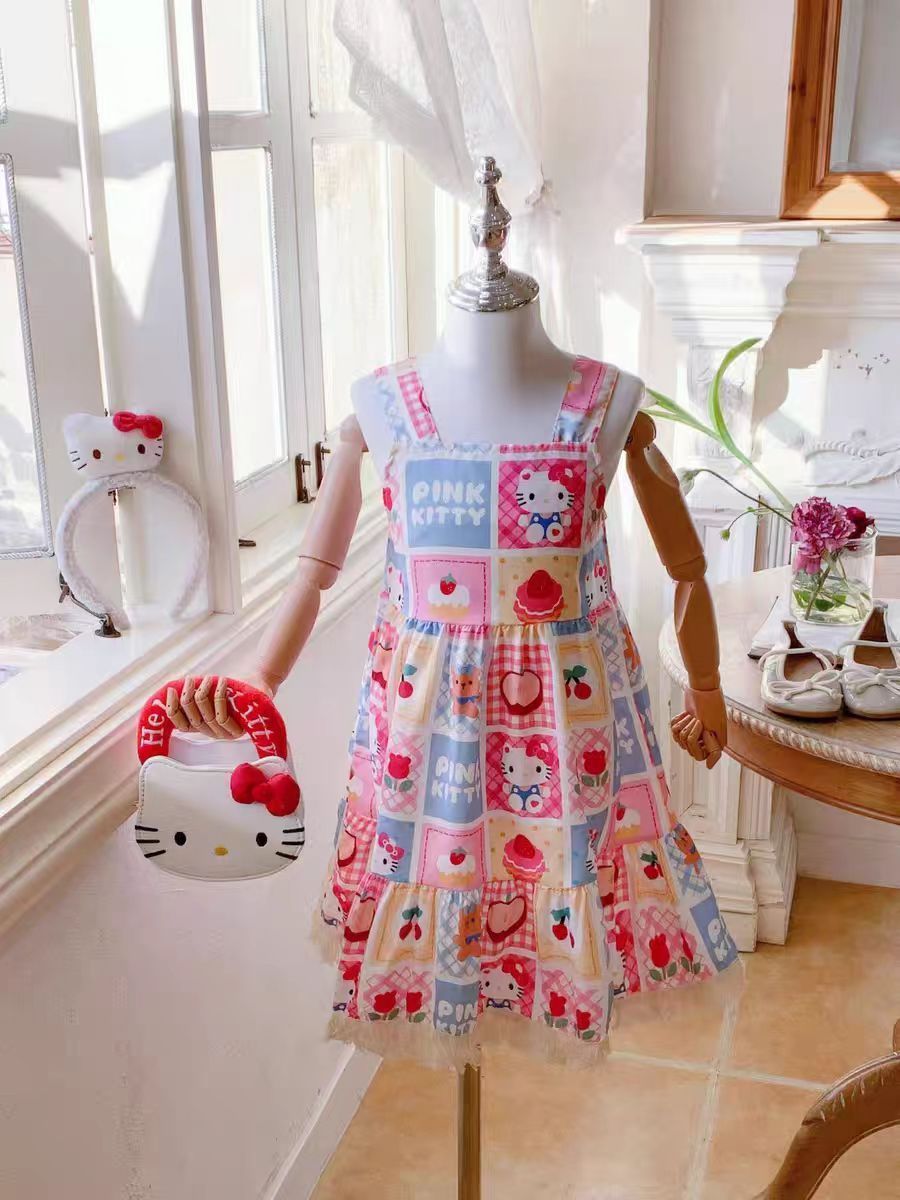 2025 새로운 여름 만화 귀여운 드레스 민소매 달콤한 숲 스타일 서스펜더 소녀 전체 인쇄 프린트 스커트 유행스토어 가기